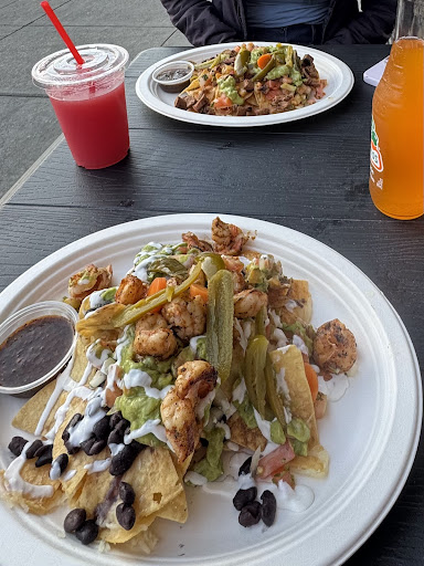 On the other hand, the food (particularly, the nachos) are pretty mid. The meat was over cooked, though the shrimp was ok, and the cheese was not melted. The salsa was good but the flavors overall were lackluster.