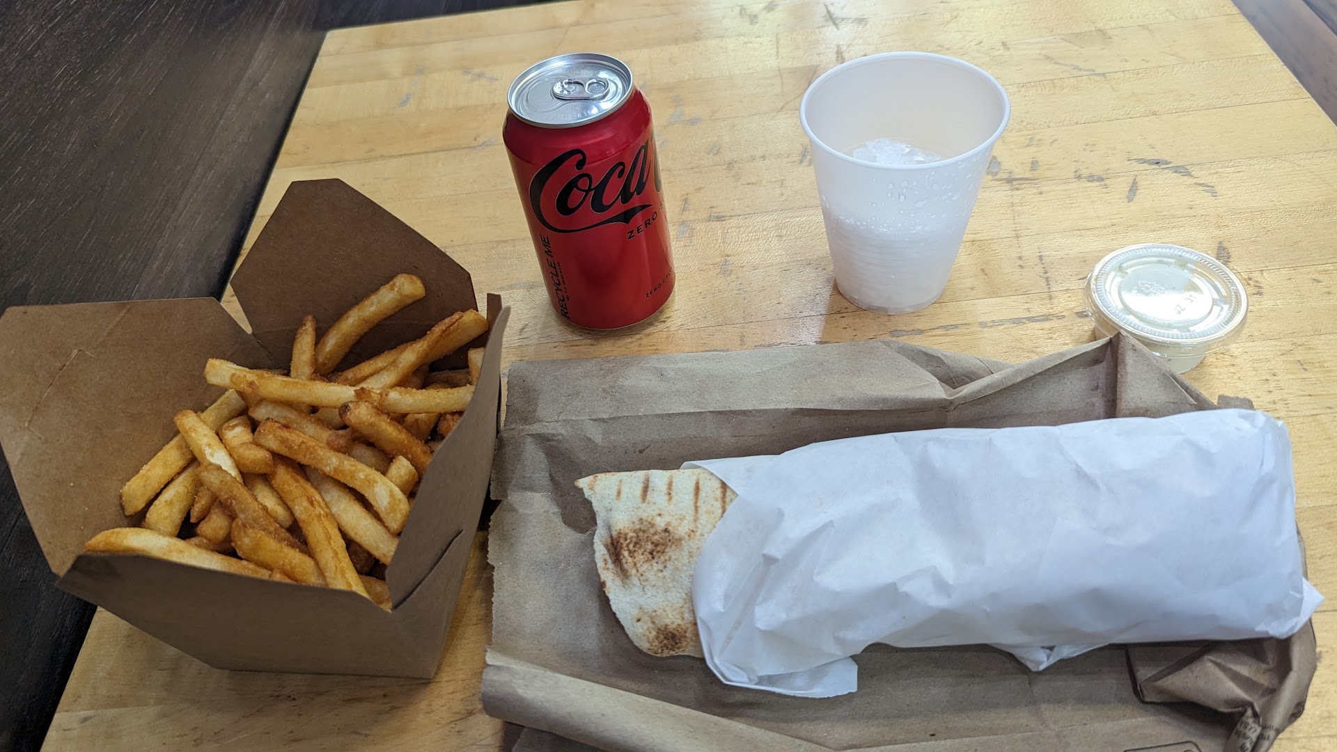 Another thing to note, is that several different cuisines claim to have a particular meat which is supposed to be cooked on a spit. If it's not cooking on a spit, it's not really shawarma, and if it's not cooked on a spit it's not really Al Pastor, so I was happy to come in and talk with Farhad about his spit knowledge, and his desire to get an even bigger one. All in all, I'm in and out with the medium spicy, (mild to me) large chicken shawarma wrap, french fries, and a drink for just under $20, and thoroughly Happy about the experience. Highly recommended!