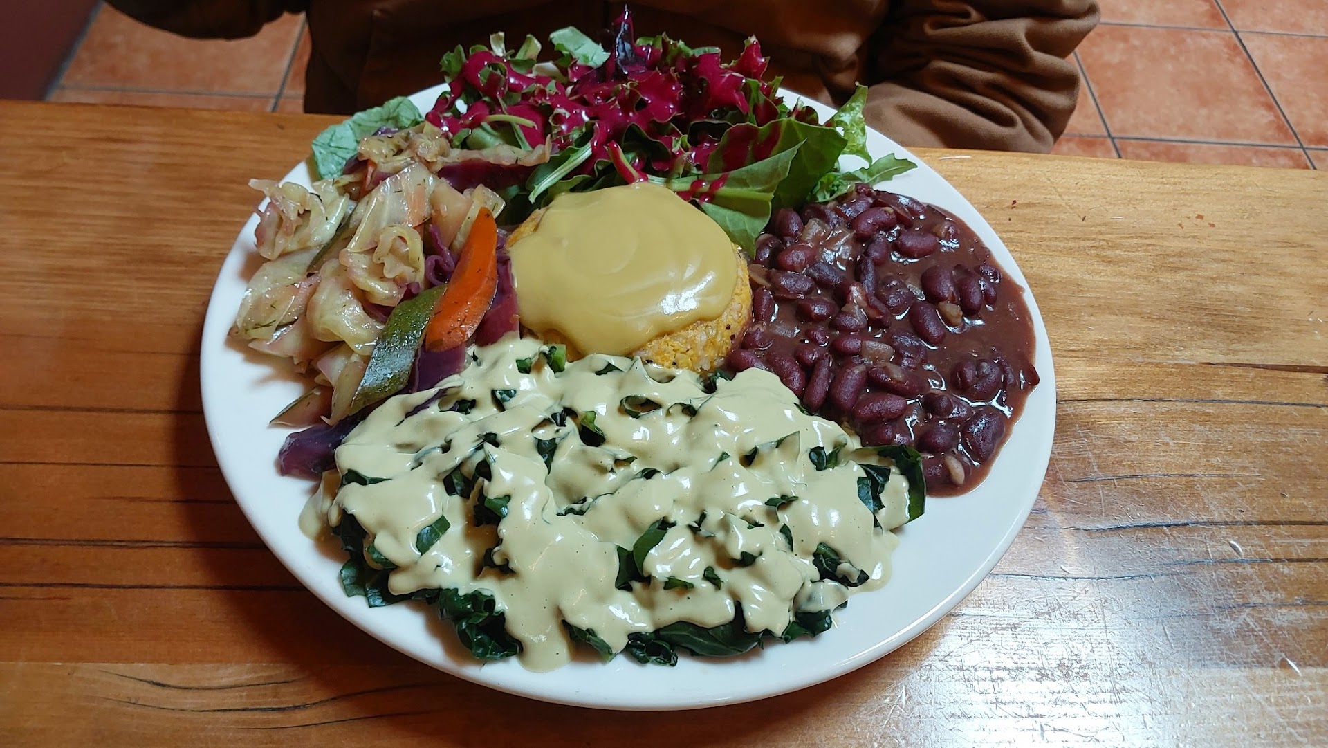 Read moreI came in for an early lunch. I was greeted by a friendly staff person who explained the menu and got my meal going right away. I chose the moderate middle option but there was so much food I will not need dinner. A flavorful lentil soup started the meal. The plate that came out after the soup was piled high. The salad with avocado mint dressing was so fresh. The beans with onion are good but I do like beans spicy. There was cayenne pepper on the table to give them a bit more kick. A good sized helping of roasted butternut squash and potatoes smelled heavenly and tasted good. I was completely taken with the greens. I am not a huge kale fan. These were cooked perfectly and covered with a shallot sauce. The greens mixed well with everything else on the plate and were tasty by itself. Yummy. I enjoyed all this with a bottomless cup of delicious tea. Really a perfect lunch for a...