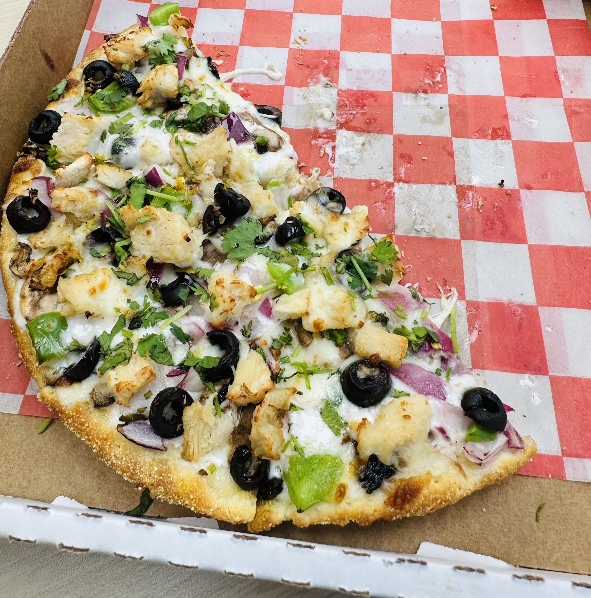 So delicious to have Indian flavors fused with pizza...it taste great! Not overpowering at all and a nice variation from regular pizza. But they also have traditional pizza and toppings, with many customizable choices to build your own.