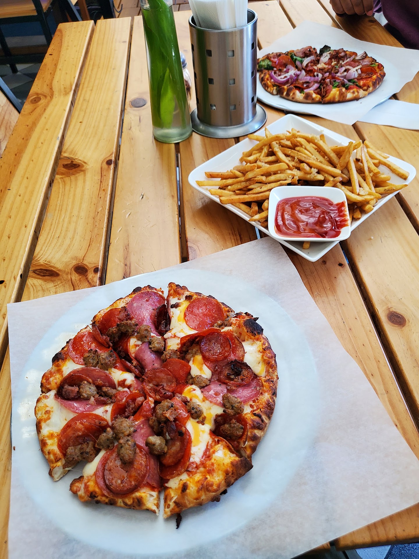 On September 29th, 2020, my wife and I ordered a combination pizza and it was very delicious, loaded with an abundance of toppings. I have to digress a bit, the first time we went the pizza was excellent and extremely flavorful. The second time not so great, and each time I wrote a review. After the second lack luster review, the owner replied being very apologetic for the experience and asked if we would return and give them another chance to make things right. My wife and I to call and order a pizza, the pizzeria seems to be family-owned by a husband and wife. The very first time my wife and I went there, we were helped by the wife and our pizza maker was named Pedro, the first time the pizza was excellent, the second time we had a different counter worker and a different person made the pizza, the third time we were back to the team that we were very happy with and Pedro made our pizza again excellent. Now I'm not seeing for everybody the bum rush this place and put Pedro to a lot of work however, any restaurant can have an off day. If you haven't tried them I suggest you do great service always with a smile very pleasant clean neat, you will enjoy yourself,...