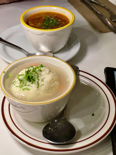 This super reliable Berkeley holdout, has been serving delicious kosher for over 5 decades, and is still one of the few places that make beef borscht soup, and has a glass counter selection of many different kinds of locks, schmears, and sides. To know a Sal's bagel with a cream cheese smear, lox, onion and tomato, is to know heaven. To know it with a little bit of beef borscht soup, used to be in another dimension entirely. As usual the staff was supremely kind and engaging, and they always have a host who's a great conversationalist. Enjoy Berkeley's last real old style kosher deli while you can, because one look around will tell you that times are a'...