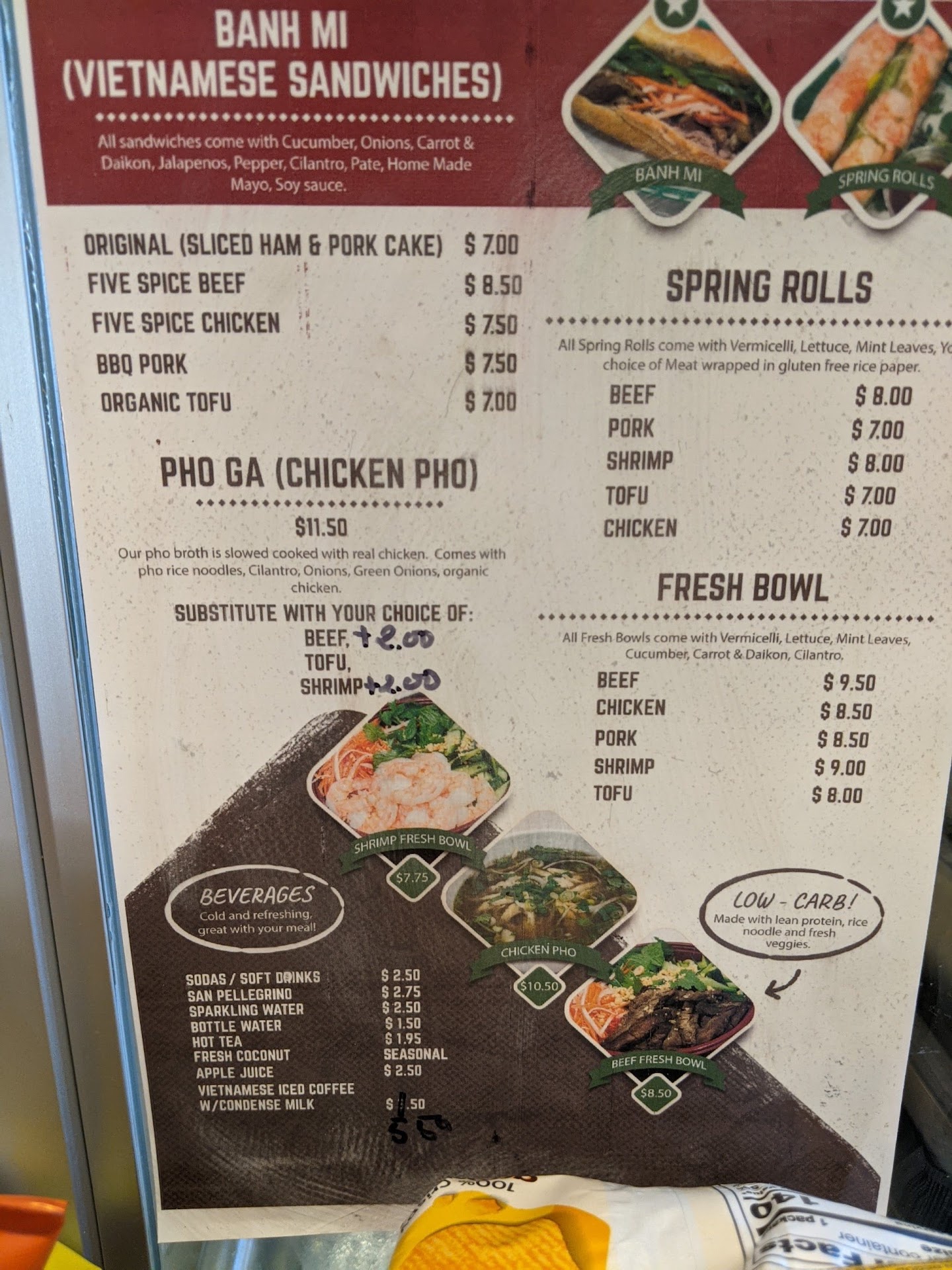Super fresh banh mi with organic tofu! (4/5 Green Stars) I wish I had tried this place earlier! I had the banh mi with organic tofu for lunch and the total cost, including tax and a 20% tip was $10.50! I was ravenous and had some concerns that it may not be enough – or come fast enough! However, the lady who took my order prepped the sandwich in as much time as it took me to take a few photos. Also, there was really a lot of tofu in the sandwich – two thick layers of it – so in the end it was pretty darn filling.