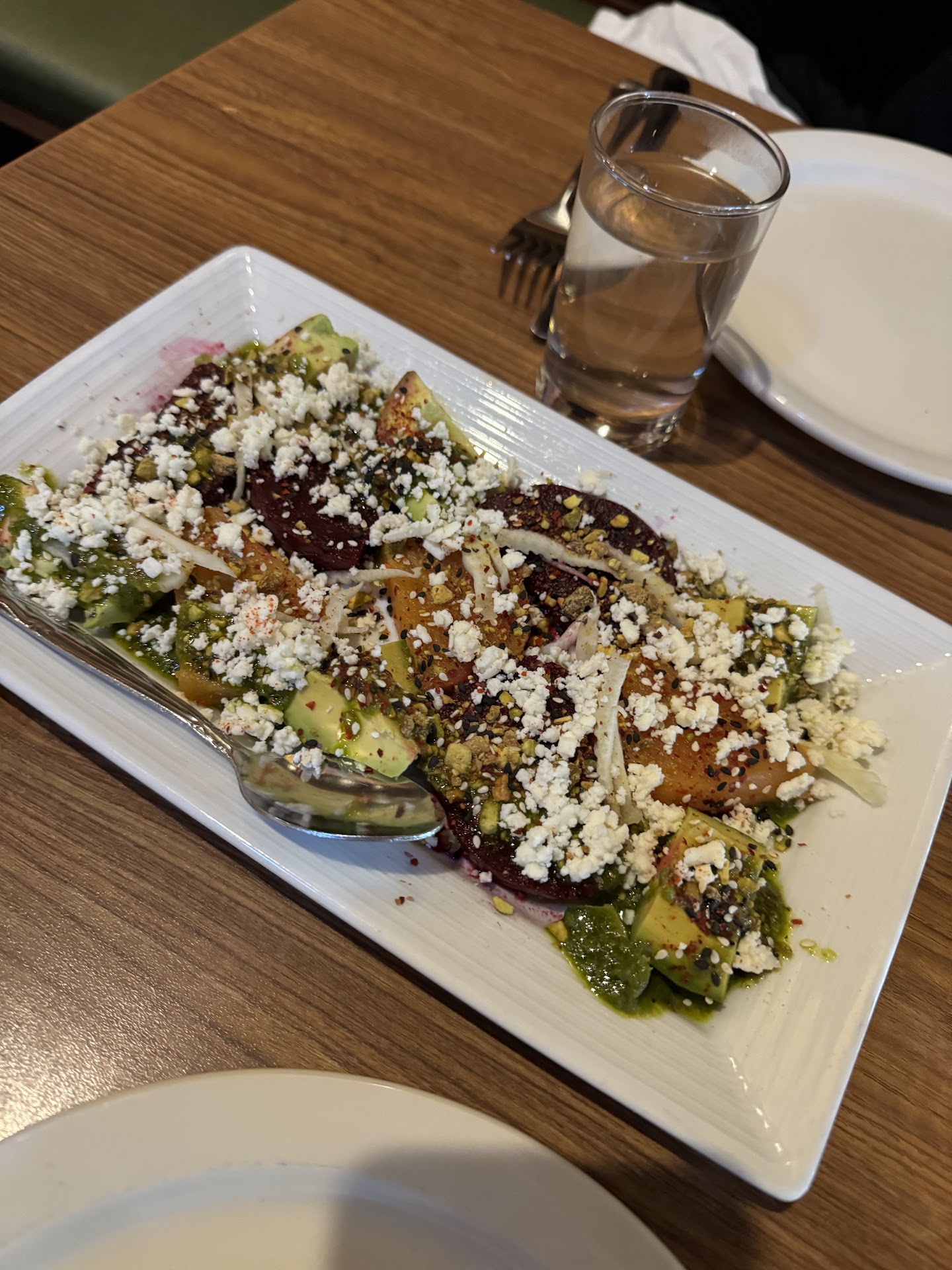 An impressive array of vegan options (3.5/5 Green Stars) Tigerlily opened in 2015 with Chef Joel Lamica (former chef of the Ramen Shop in Rockridge) running the kitchen, but has new management since 2019. I’ve been twice – once in the good old pre-lockdown days, before the management changed, and then a couple of months ago. And I have to say, I really enjoyed the food both times. Congrats to the new management for maintaining standards. They could do a better job at providing more info on their website, though. The original team favored organic ingredients but that’s not clear anymore. They do serve a lot of vegan dishes, so thumbs up for that. We had two of my standard Indian dishes – veggie samosas and veggie korma. Tigerlily’s versions of these two were possibly the best (samosa) or among the best (korma) that I’ve ever had. This is significant, given that I’ve had many samosas and kormas in my time. The veggie korma ($21.50) includes rice and garlic naan and has a good balance of spice, heat, creaminess, and tasty veggies. The veggie samosas (delicious pastry, not greasy, very filling) are normally $10 but note that both korma and samosas are on the happy hour menu, so avail of that if you can (4:30 to 5:30 every day). We also had the Sesame Avocado Flatbread ($13.50), made with fennel seed, turmeric, sprouts, parmesan & chili oil. Staff members were very friendly and I highly recommend trying it out during happy hour while it’s not too busy.