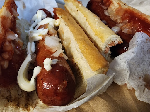 Any dog is grilled to perfection within a few minutes despite having a line. When you are called make sure you know what you want. Tell the cook and they'll put it on the grill. Then they will usually ask if you want a drink (1.50) before cashing you out.