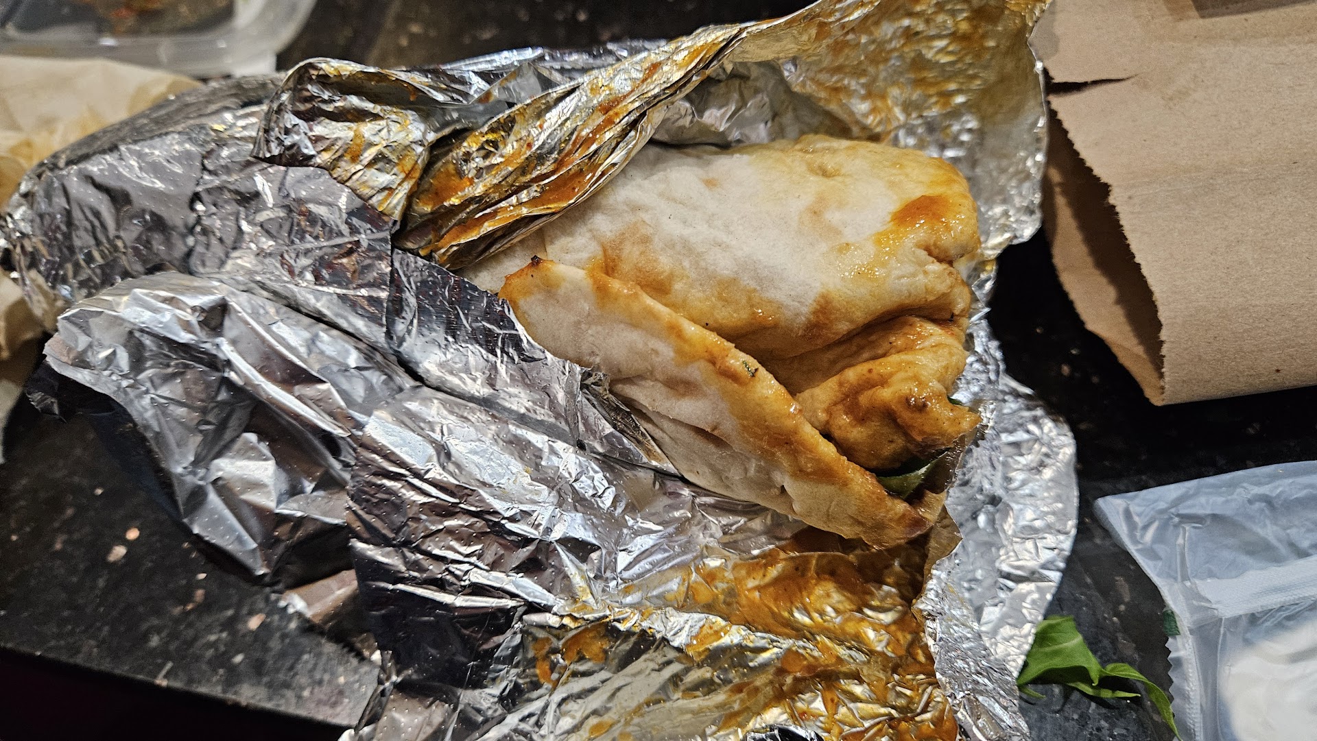 Read moreI would recommend the butter chicken wrap if you’re an omnivore. The naan is made fresh in front of you, and you get to choose your own toppings. The onions and cilantro are a must, they bring the rich makhani sauce to life with little aromatic explosions, and if you like spice there’s jalopenos too. The chicken has a varied texture, there’s tender bits and crispier bits, you won’t get bored eating it. Spring mix is an option, and though I’ve never seen it in Indian food, it works very well for texture and flavor. The chutneys to top it off will bring you down to flavor town. There’s Tamarind (sweet), Mint (moderately spicy), and...