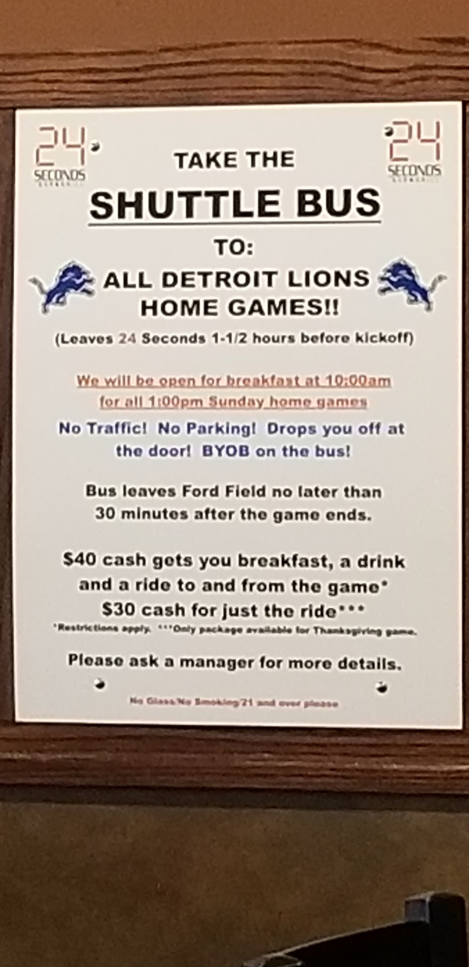 Went to O'Mara's for dinner instead, about 1/2 a mile west of 24 Seconds Bar and Grill. Food was delicious, the coffee came in a ceramic mug, and there was...