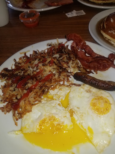 Read moreThe waitress gets 5 stars. She did EVERYTHING RIGHT! She did everything she could with what she had. It was the middle of the night on July 4th (by that time, technically, it was the 5th). I saw her write down my order. I heard her read it to the cook twice. I heard her read my wife's order to the cook twice more, despite writing it down clearly. Now. Let's talk about the cook. As far as I recall, a cook with a beard, ESPECIALLY one that big, is required to wear a net over it, as well as a hair net. (He had neither) he slowed our orders up by asking the solitary waitress dumb questions about the orders, that she had written clearly on the ticket. If the cook has a question about an order, he can ask the waitress quietly! I should not be able to hear him from the other side of the dining room. One last thing: How on Earth would the cook think he knew what I ordered and how I want it, when he didn't speak to me?! He actually used the words "No. What he wants is..." Furthermore, they seemed to be without a lot of things, like spinach, vegetarian burger patties, English muffins, icecream, and a couple of other things that a restaurant will only run out of, by poor management (manager didn't order things). I overheard an order that had been placed online, the majority of which was not able to be fulfilled, because of broken equipment and lack of supplies. Web Design Fail. If the icecream/shake machine is broken, the website shouldn't accept an order for the item. Out of vegetarian burger patties? Unable to order this item. These are reasonably simple programming issues that should have been addressed, especially during...