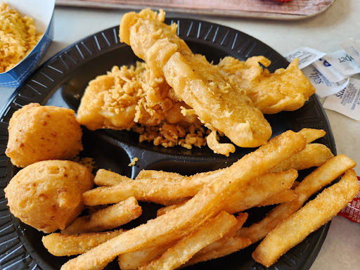 Read moreThis is most likely the last time I will pick up food here. Ordered the L1 (2 fish, 1 side and beverage). Fish was not good - the oil was old and I suspect the fish was, too...and then redropped to reheat. Yeah! Cole slaw was very dry - no slaw dressing, even in the bottom of the bowl. Iced tea was cold but very weak Hush puppies were okay. Seems to me this combo used to include 2 sides, but nothing like that on the outside board, and no side is worth $3.19! Very disappointing. Will wait next time to find a...