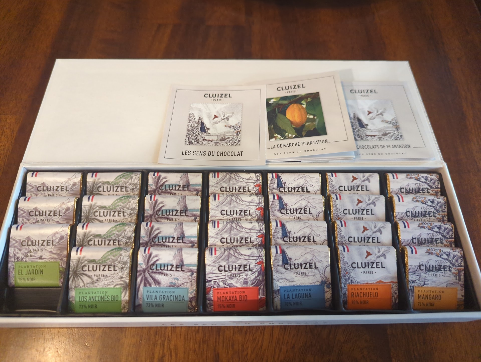 Read moreBEST QUALITY CHOCOLATES IN THE WORLD ! I wanted to buy my wife something extra special for Xmas. We have tried Cluizel chocolates before and of course being very fine quality...they are not cheap. I looked on their website and found exactly what my wife would like. I know they pack their chocolates very well for shipment across the USA so I went ahead and ordered a box of ( 25 ) Mendiants - Dark & Milk ( Chocolate discs, 63% dark, and 39% milk, decorated with candied orange dices, whole pistachios, almonds, and hazelnuts, caramelized in copper cauldrons...each piece is unique and entirely hand-decorated ). to ship to us in California. They arrived a couple of days later in perfect order and tasted extraordinary. IT'S TRUE....YOU GET WHAT...