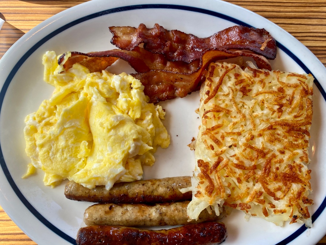 The food was absolutely horrible. The only reason I didn’t make a fuss about it is that it was a free meal for me. Both my wife and I’s food arrived cold, like room temperature. My pancakes were mush because the flavored syrup had already soaked all the way through to the plate. I had scrambled eggs that were almost completely uncooked on the bottom. My 2 bacon strips were cold and hard, and the fruit cup I ordered was replaced by sliced strawberries which wasn’t mentioned until the meal arrived. Sadly, the fruit cup is what I normally share with the baby because she loves eating the oranges, but that didn’t happen.
