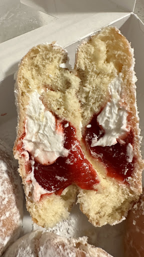 I ordered 6 donuts - half a dozen. They have a huge variety of baked goods. I ordered powdered donuts filled with blueberries, strawberries, raspberries, strawberries and cream, and cream filled. All the donuts were delicious, fluffy, fresh and filled with a generous amount of filling. The box of donuts had weight because the donuts were not lightweight. The donuts were a nice size. The donuts smelled amazing.
