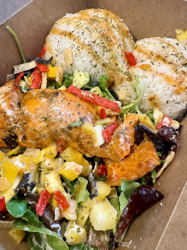 Ā Ā Ā Read moreI went in today and ordered the salmon rice bowl , a chicken, and a vegetable patty and a drink. The food was really good loved the combo of spicy and sweet there are pineapples in this dish . When I came in some nice old school reggae was playing and everyone was pleasantly waiting for their food . There is a bit of a wait so if you are in a rush come after you finish other errands. It is a new establishment and not a lot of staff . However I used my time to chat with other patrons waiting and take in some good tunes. I will definitely will go back and try something else there are lots of good options...