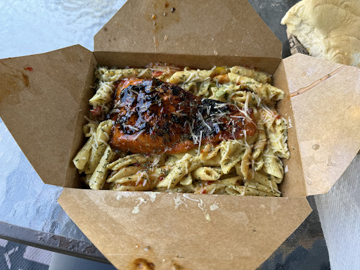 I got the Rasta Pasta with Jerk Salmon. The pasta had a nice Jerk kick paired with a sweet drizzled sauce. The salmon was cooked to PERFECTION and had a good amount of seasoning.
