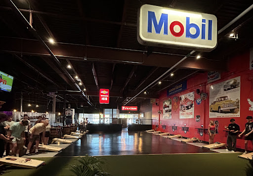 Read moreI gave this place a three-star based on the bar. It is not traditional full bar. And they should take the word "bar" out of thr title. You can buy any type of soda or mixer and a nipper of your choice from their selection. Or a canned beer. My friend and I ended up getting a Red Bull and a vodka nipper. He asked us if we wanted it in a cup and we said yes, he handed us the red bull can, the nipper and an empty cup. But other then that, the play seemed pretty cool. Tons of corn hole boards, 4 pool tables and a ton of arcade games. The stage and the area to dance was also pretty large. They also have a pizza place in their called Square Peg(they are small business that started in glastonbury). We did not have pizza but the I've had their pizza before and it is good thin...
