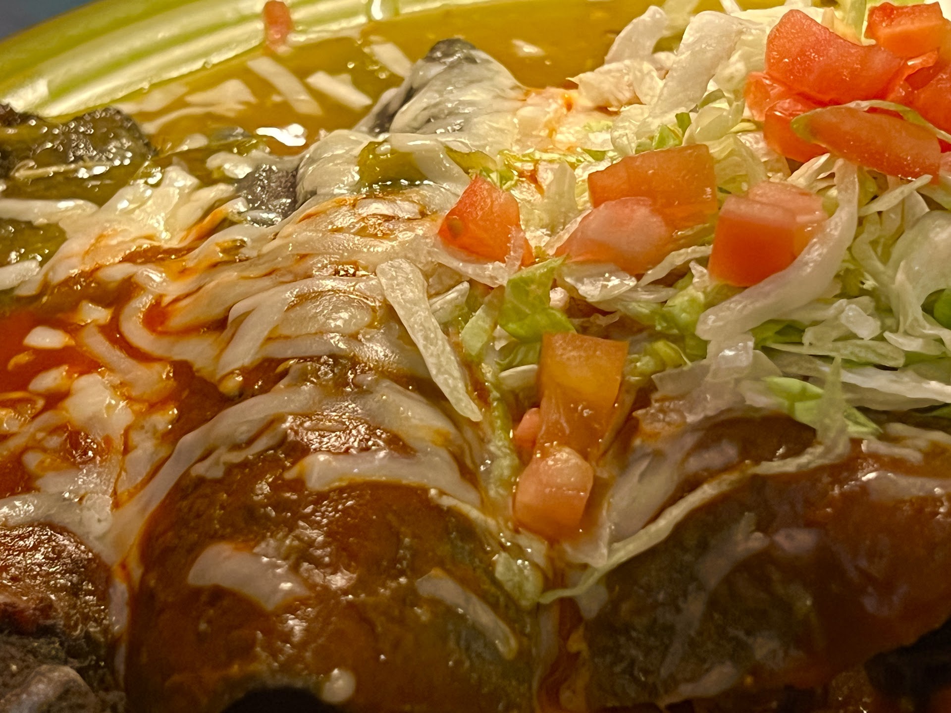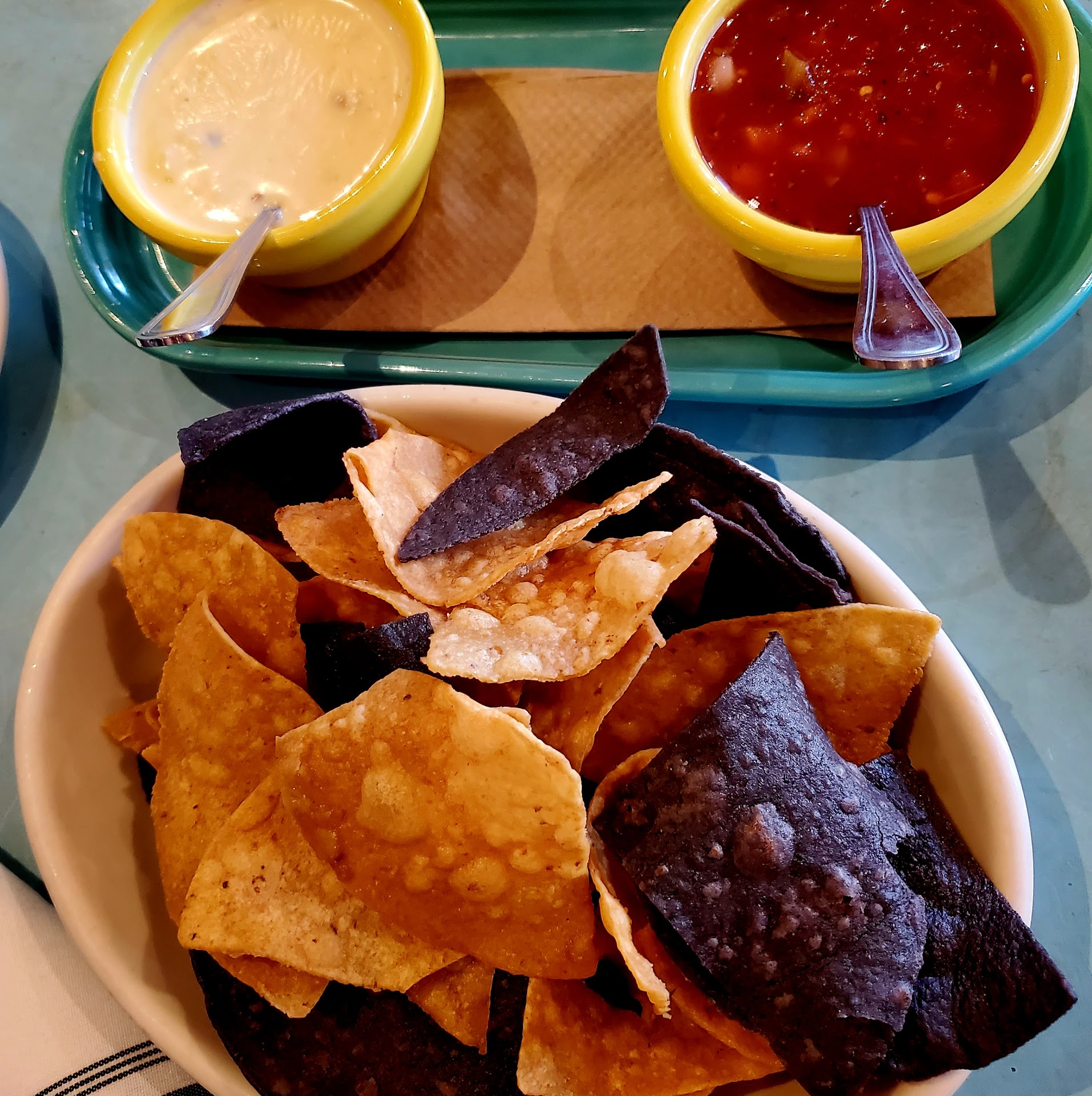 My mom got the Combo Plate, which included one blue corn chile relleno, two rolled beef blue corn enchiladas, one chicken taco, arroz verde (cilantro rice), pinto beans, and she got “Christmas” (red & green sauce both) on the side for her sauce choice. Her favorite was the relleno and she didn’t even think she liked those. She didn’t love the taco as much as everything else. My mom got the Prickly Pear Margarita and she enjoyed that, it was strong enough to get her tipsy, so I drove us back to our tent in the Jemez area after 😂