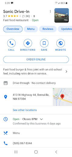Read moreWe were next door using the big washers at the laundry mat and decided to walk to grab some food from Sonic in BernalilloâŚhuge mistake as the service was horrible. We walked up to the car ordering station to place the order and even asked an employee if we could order this way and she said yes no problem. We were right in front of the pick up window and several employees saw us standing there and the screen even said they would be right with us. 10 min later nothingâŚso we walked to the front doors and a very helpful young man said to use the screen in front. So we placed our order and when it came out the drinks were wrong and we had the wrong type of hotdog. Got those 2 issues fixed and walked away. Not knowing the burger was also wrong until I took it back to my wife. So I walked back over and asked for the manager on duty and let her know the issues I had gone through from beginning to end and she said âwell what do you want?â With attitude. I asked for the burger to be corrected. She said âI will fix it but you need to wait outsideâ in a very rude tone. She brings out the burger and I leave. Get back to my wife and hand her the burger and it is still wrong even after I had explained exactly what was supposed to be on it to Nicole the manager. I was too angry to go back so my wife went back over. Nicole the manager said to her âhow many times are you going to come back for the same order to be fixed?â This manager âNicoleâ definitely needs retraining or needs to find another job! We are completely disgusted with her service and attitude. I work for the schools in Bernalillo and believe me I will be letting everyone know about...