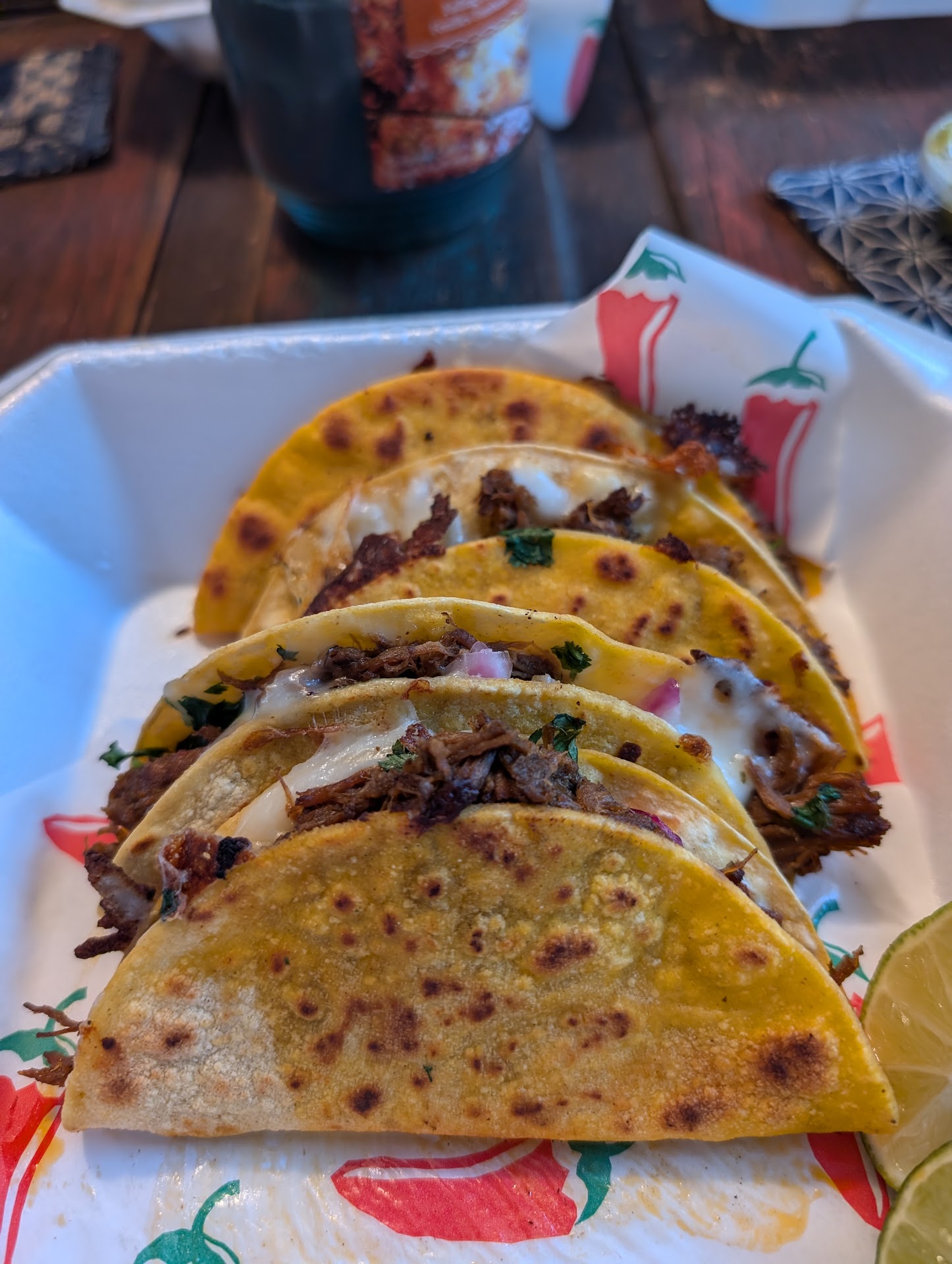 Read moreWe typically have birria tacos at Rio Taco and Don Choche. They are about the same price. These were edible but lacked flavor, spice, and the consume was not flavorful. They were smaller than the $0.99 cent Taco Bell ground beef taco from back in the day. The taco shells were hard and I don’t think they were homemade. The taco shells did not have good flavor. I didn’t even really want to finish after half of my first taco. I don’t understand why food trucks are so stingy with their food. We...
