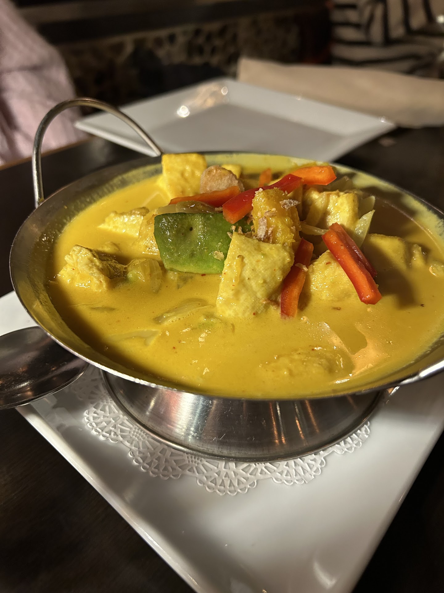 The appetizers were okay. The vegetarian rolls have a bad texture and no flavor, and the accompanying dipping sauce didn't do much to help. The crab sticks were very good, and would probably get these again. The curry puffs were a favorite at the table and didn't last long.