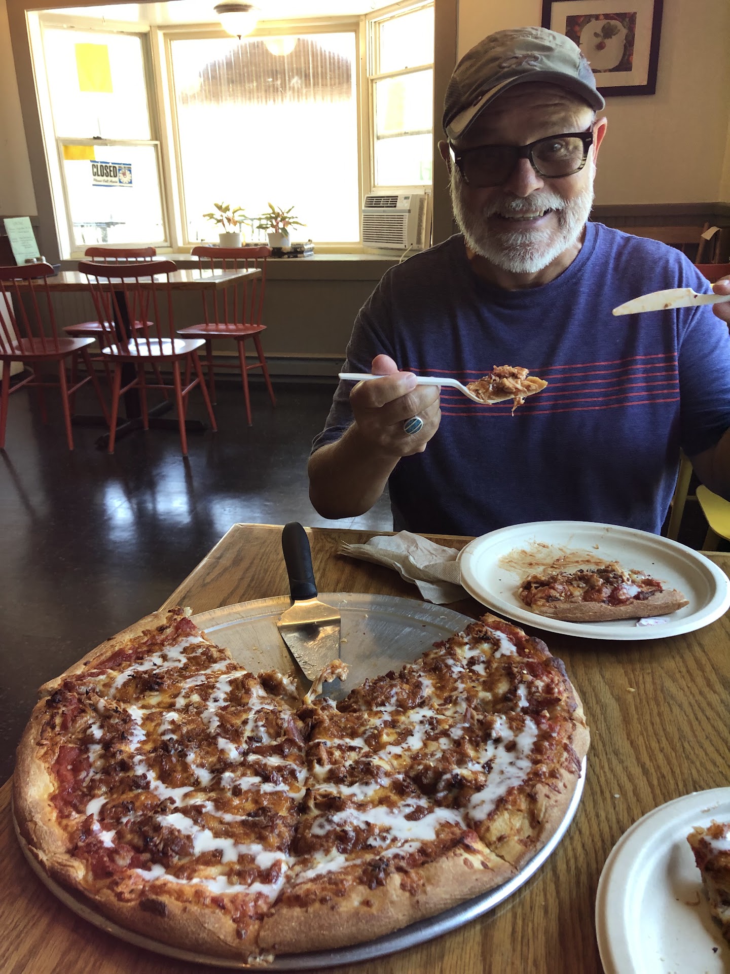 Read moreLove this place. We had the special pie today. It was BBQ chicken, bacon & ranch dressing. It was very good. They have a really tasty crust here with a nice yeasty flavor. Their red sauce is good too. Our pizza was a little soggy, but that was probably due to the BBQ chicken. The pizza was super hot and the cheese was crusty and delicious. They have Off Road Joe’s chips and drinks as well as local beers and seltzers. The dining room and bathroom was very clean. We really liked the fact that the offer slices & whole pies. Also found it cool that Togo boxes and containers were right in the dining room, so you can grab what you need to take leftovers with you! Our server/counter person was extremely friendly and had a super cute hair style. We definitely would recommend to everyone. Oh, it’s also organic and local! All around...