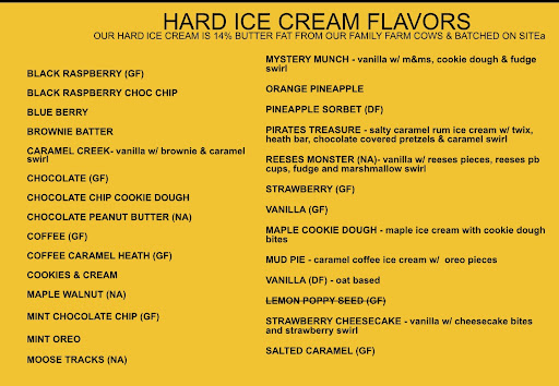 Always a great time bringing the family here. They offer a ton of flavor selections with both soft serve and hard ice cream, which is nice because not a lot of places don't offer much of a selection when it comes to soft serve, which, for me at least, I prefer more. All the workers we've ever encountered have always been nice and have patience as well when my kids are debating on what flavor to get. The only thing I wish is that they would either have their updated full menu (including pricing) posted somewhere or a secondary one posted a bit further back, as you can't see the main menu well if you're waiting in line, and if you're someone who likes to know a menu before arriving or getting to the windows to order, it would make it better to do something like that. I added photos of at least the soft serve and the hard ice cream flavors from the day we went that were available then. Great stop...
