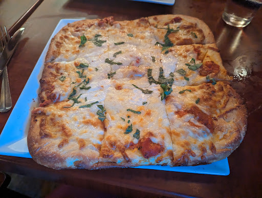 The food was also unfortunately pretty underwhelming. We split the calamari app, and at one of the bartender's recommendations, I ordered the drunken grandma pie (knowing it was a huge serving and leftovers would be forthcoming). There were pieces of the calamari that I thought were very tasty, especially with the spicy tomato chipotle sauce - that sauce was the star of the night in my estimation. But I'm honestly a little mystified at the addition of the balsamic reduction on this dish (which to be fair is absolutely referenced in the menu description). Palate-wise, it's just not a great blend of flavors in my opinion, so I avoided the pieces that were covered in that drizzle. When you have such an excellent accompanying sauce, why mess with perfection? It felt like an unforced error. The pie was also not great. The description referenced a vodka sauce, which is what I've encountered in drunken grandma pies at other establishments. However, this just tasted like normal tomato sauce, and you can see in the picture it just looks like a normal square cheese pie. I had a few slices of it, but the cheese was way too rubbery for me. Definitely a miss in my book.