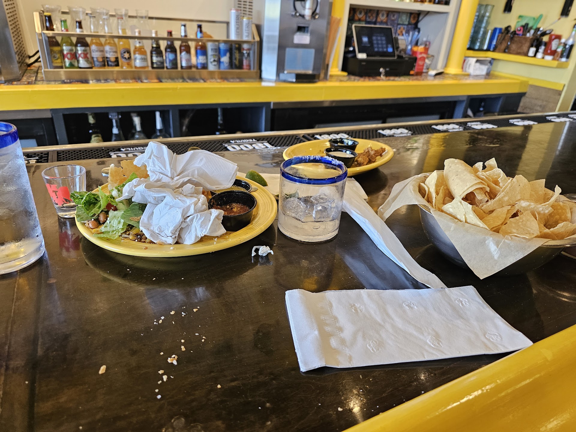 Read moreThis place seems to be genuinely a new York minute hole in the wall tex mex style joint. I think the sauces are just ok but the prices are more than fair. They put the sour cream on the bottom of your taco salad on the plate(as pictured) but not in the food which I respect. Their fried pickles are double breaded pickle spears! So...almost like a vegan chicken tender(excellent touch). The service is cordial but not overly friendly. The kitchen was fast and efficient however this isn't Ruth Chris and it doesn't pretend to be. 4 dollar margaritas are insane during happy hour so drink up. I came to see if they can dethrone bartaco for the title of "best margaritta in the city"! Unfortunately it's not even close on this one. I have poncho and lefty in 7th place right behind taco mamacita. The outlaw margarita is very sweet at this location and the glassware was a bit too colorful in many a sense. If you throw a shot of their ghost pepper tequila in with your happy hour marg you will be impressed(get it on the side). However for the price of one bartaco marg you could have 3 here(no added shot)...just saying. Nah, I'm super saying that this is a great pre game spot. Plus on the 5th of every month they have "all day happy hour". So maybe I'll see you out here on the next 5th? I bet they would rent the entire space out to you if you asked. Next 5th? You know where Nashville! I recomend this spot for good cheep drinks, pre gaming and a tex mex fix that won't break the bank this everyman's joint will not disappoint! Cheers Nashville!!! Cinco de...