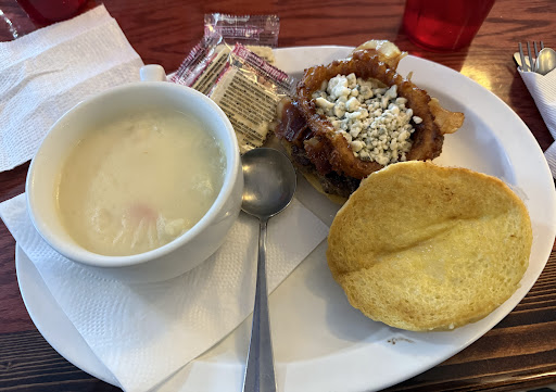 Read moreThere was a restaurant that I used to go occasionally, and when I heard it got bought out I wasn’t too happy. However, many of the employees worked there now work here with the same menu! This restaurant is a little out of the way since there is no advertisement along the roadside (but the food will make up for it!) If you’re going to come to Pine Grove you have to get the onion rings. Why you may ask… the reason is they make it out of funnel cake batter! This restaurant is a little whole in the wall, but it’s clean and good homemade cooking. I ordered the Blue Ridge Burger and it comes with onion rings, blue cheese, and bacon. I absolutely loved it! My family members ordered the chop sirloin and the chicken salad sandwich. They both enjoyed their meal. Like I said… if you plan to eat here you must get the onion rings! I’ll definitely be back.