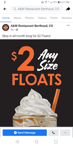 We enjoyed it so much that on a recent trip to Rocky Mountain National Park we made plans to stop here again on our way back It was another busy Saturday and once again the staff were Rock Stars ! The subtle thing that I noticed on this trip was the food comes out looking just like the pictures on the menu. Seems like a simple concept, but many fast food restaurants underdeliver in this area. It's worth going a little bit out of your way to stop at this A&W and take a step back in time and have...
