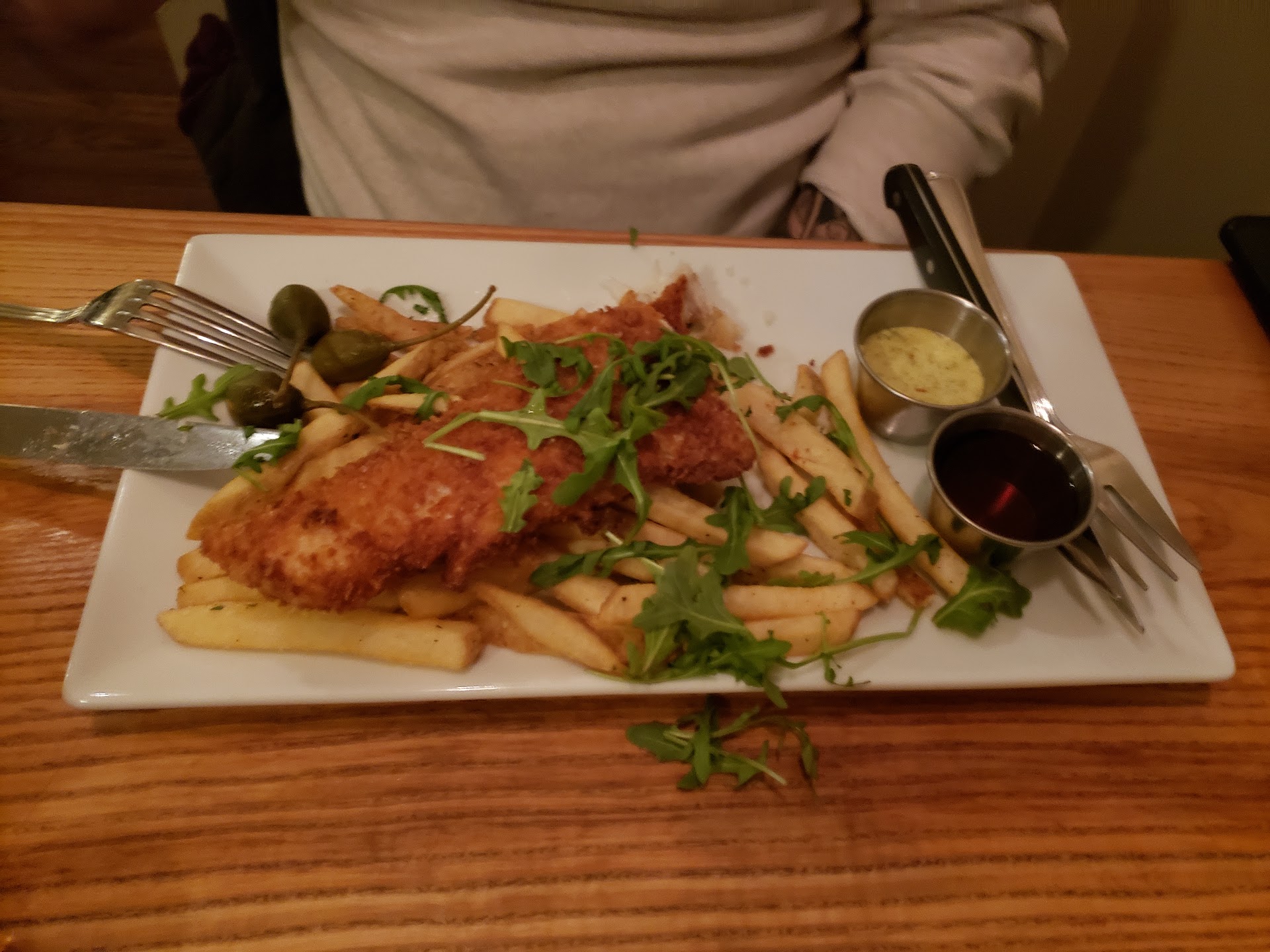 Read moreFour of us went for a little celebration, and were really looking forward to the evening. We had been before, and enjoyed the food. While the food is good, the service and ambiance is not a fine dining experience. The table setting has no cloth, no candle, no bread, no bread plate, not even a place mat, hard chairs, and just a single knife and fork. We ordered appetizers and enjoyed them, but when the busboy took our plates away he told us to hold onto our saucy dirty knife and fork. There was no place to put them but on a bare table, so we just held them in our hands! When our entrees started arriving, they came one at a time, even though we told our waitress that we each wanted an entree to ourselves. Two of us ordered the same thing, and those even came out five minutes apart! By the time three of us were served, the fourth entree of trout was no where to be seen. Our meals were getting very cold, so the one waiting for the trout told us to go ahead and eat! We finished our entire meal, sat there some more, and still no trout! After our plates were taken away, the trout came out! We mentioned to the waitress that the meal was very poorly timed, and she whipped back that most people share their meals, so it just comes whenever! (Seriously, it takes five minutes to cook trout!) Sarah was our waitress, was dressed in blue jeans, never cracked a smile, barely spoke, and acted as if she really didn't care what we thought. We ordered desserts, and to compensate for the 20 minute wait for the trout, she took $8 off of our meal for one of the desserts, and never once apologized for the problem. The dinner was over $180 for the four of us, and was truly not the fine dining feel that we had hoped for our celebration dinner. I was so angry with the place that I couldn't even sleep. Food isn't everything when you want a nice night out. A little comfort and grace goes a long way! ( and a...