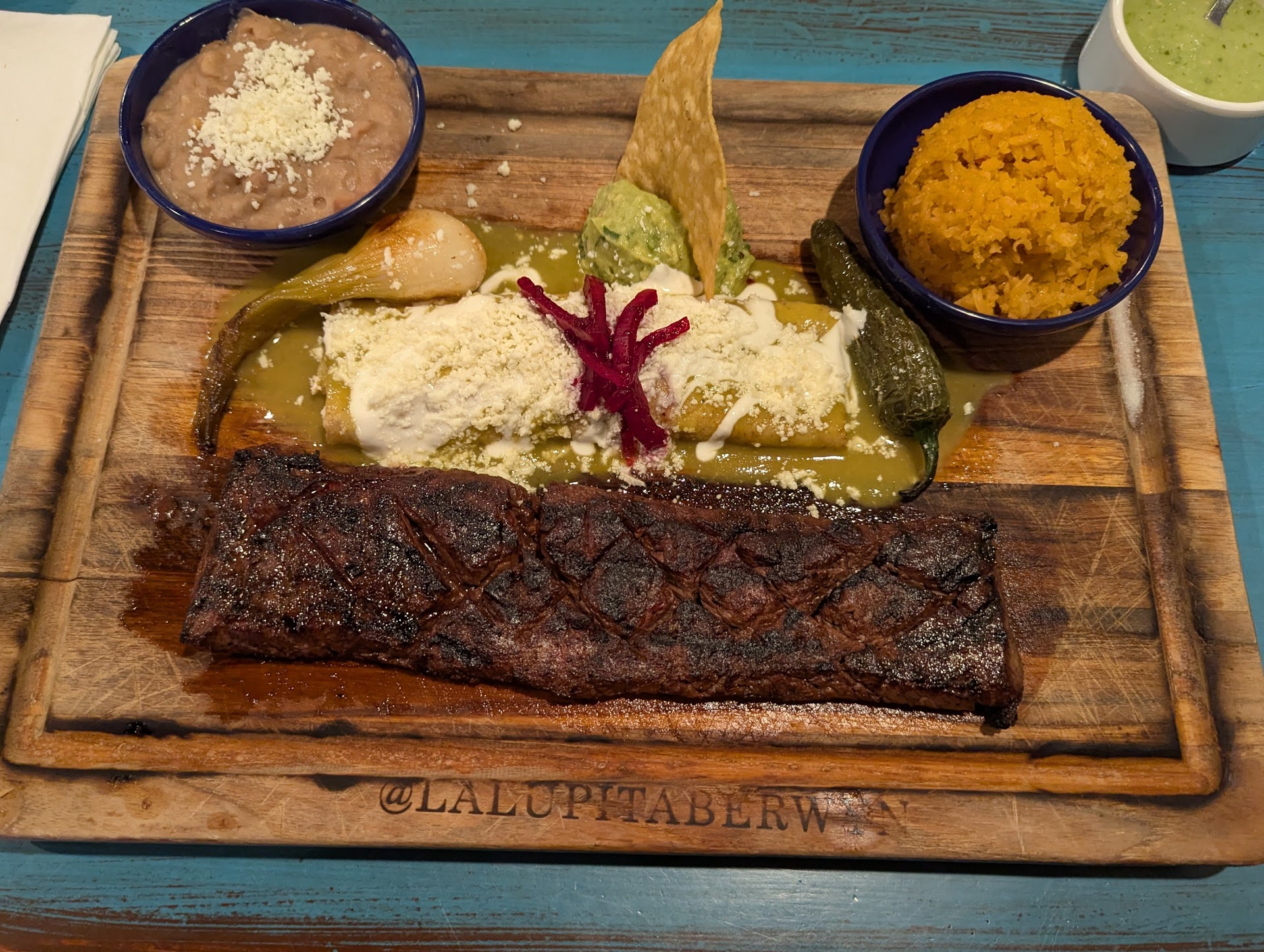 Read moreCame here with my boyfriend, sister, and friends. The service overall was terrible; asked for a margarita with mezcal, and they said they couldn’t make it because the margarita was a premix. When I asked for a mezcal drink on the menu but substitute it for lemonade instead of pineapple juice (since I’m not a big fan), they said they didn’t have lemonade or anything else.. (what is the margarita mix of?). Margarita was pretty watered down and tasted like cheap white tequila; my boyfriend and I ordered quesabirrias and an order a flautas. Quesabirrias were good, flautas were okay… SPEAKING ABOUT the flautas: when the waiter took our order, he didn’t ask what type of flautas we wanted, and assumed we wanted chicken. After he left, and when he came back, I noticed someone else in the table was asked which type of flautas they wanted, I asked which ones we got, and he said Chicken; my boyfriend preferred steak, and they said they couldn’t change it. Also, my cousin wasn’t sure of what she wanted, and the waiter said if she didn’t order with the rest of us, she wouldn’t be able to order at all… what?? Last but not least, it seems the waiter didn’t care if we liked his service or not, because we were 6 people at the table, and we automatically got charged 20% service fee with the option to tip more. ALSO, a photographer kept asking if we wanted her to take pictures of us (probably to sell them to us) and we all said no. NEVER coming back again, please don’t come here. I could keep going on with a lot more that happened, but I think I covered enough. VERY overpriced, terrible service, atmosphere was meh, and I think you could spend the amount of money we spent on a way nicer, yummier place. I rarely leave bad reviews, but I was already a bit iffy on coming here, and after dining here, I was even more upset of what a waste of my time and money it was. Even considered getting up and leaving after that one margarita, but I was starving and decided to give it a try....
