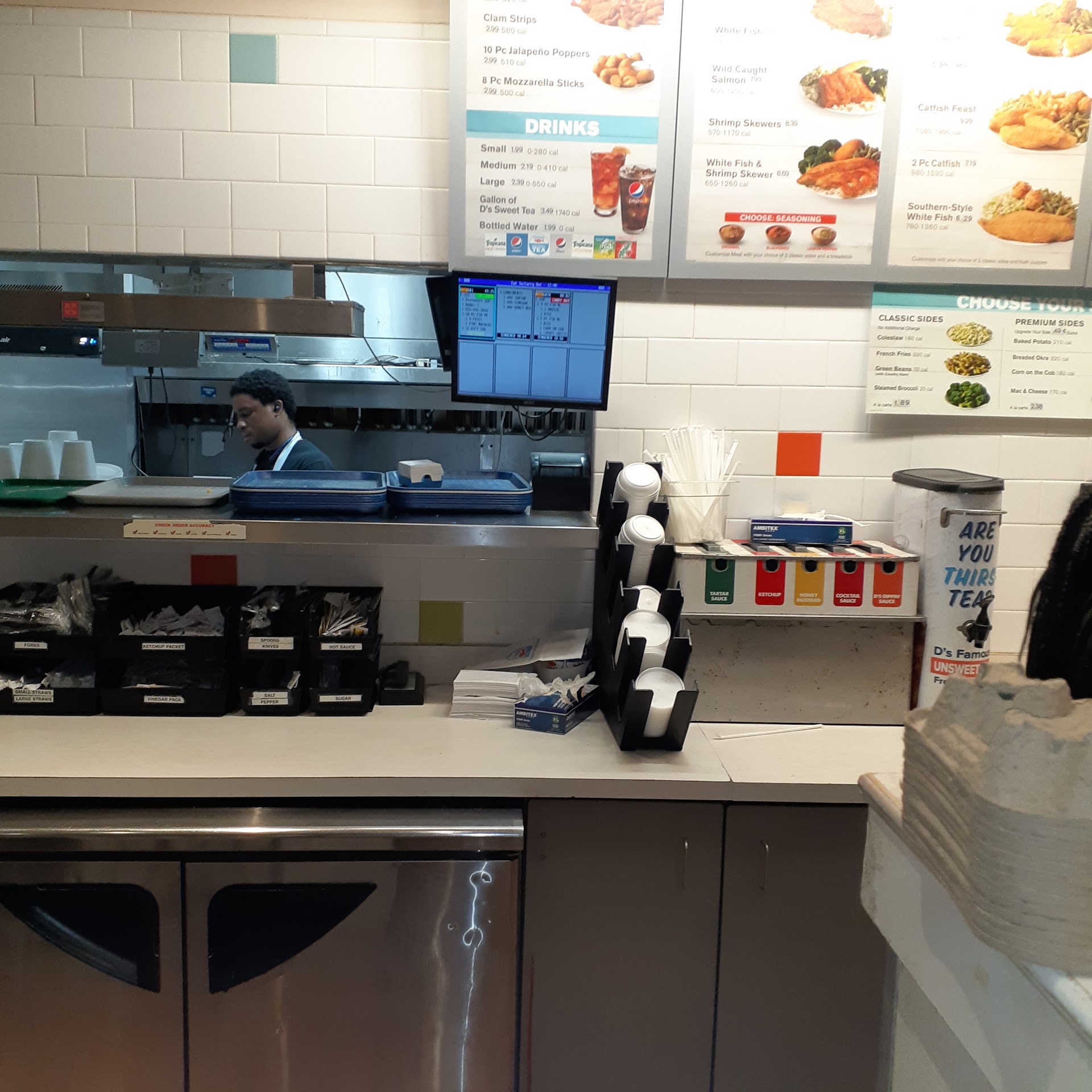 Read moreThe Drive Thru was extremely busy and there was a long line of cars that were literally wrapped around the building, yet there were hardly any people inside the Dining Area, so my friend and I went inside to place our orders to go. Once inside the lobby, we noticed that there still wasn't a line, and since we both knew exactly what we wanted, we walked straight to the counter and began waiting to place our orders; however, instead of helping us, the cashier answered the store's telephone and proceeded to take a call-in order. Now, I'm not exactly sure how Captain D's wants their cashiers to do things, but I thought that it was rather rude to take someone's order over the phone while not even acknowledging your dine-in customers. Furthermore, we were there at the designated order area waiting to have our order taken well before the phone rang, so technically, the telephone folks should have been placed on hold until after we finished ordering.. IJS. While waiting for the cashier to finish keying our orders into the system, a couple of issues came to pass- I requested that an extra order of hush puppies be added to my order- and I asked the cashier what the price for that was because I didn't see it anywhere on the menu; unfortunately, she said that she didn't know; however, the man in line behind me knew exactly what the price was.. $2.89- and as it turns out- he was correct (and he doesn't even work for Captain D's)! We didn't have to wait long at all for our food, around ten minutes, which was GREAT! When the cashier handed me my big to-go bag, I opened the small box on top and there was one single hushpuppy in it. The cashier explained, with a straight face, that this was the extra hushpuppy I had added on [and paid almost $3 for]. No thanks, Captain D's - I don't think so! After speaking briefly with the shift manager, the cashier logged back in to correct this issue (along with the issue(s) of my two missing sides, missing condiments that were requested three times and my missing order of butterfly shrimp. The cashier was quite obviously new but she was really trying hard and I appreciate that SO much. Aside from ignoring us while taking a telephone order, she honestly did a great job and she definitely gets an A+ for effort. At the end of the day, the food we took home to our families was hot, fresh, and delicious! I never mind waiting if I'm waiting on hot food and that's EXACTLY what I got.. It was SO, SO worth the wait- We will both...