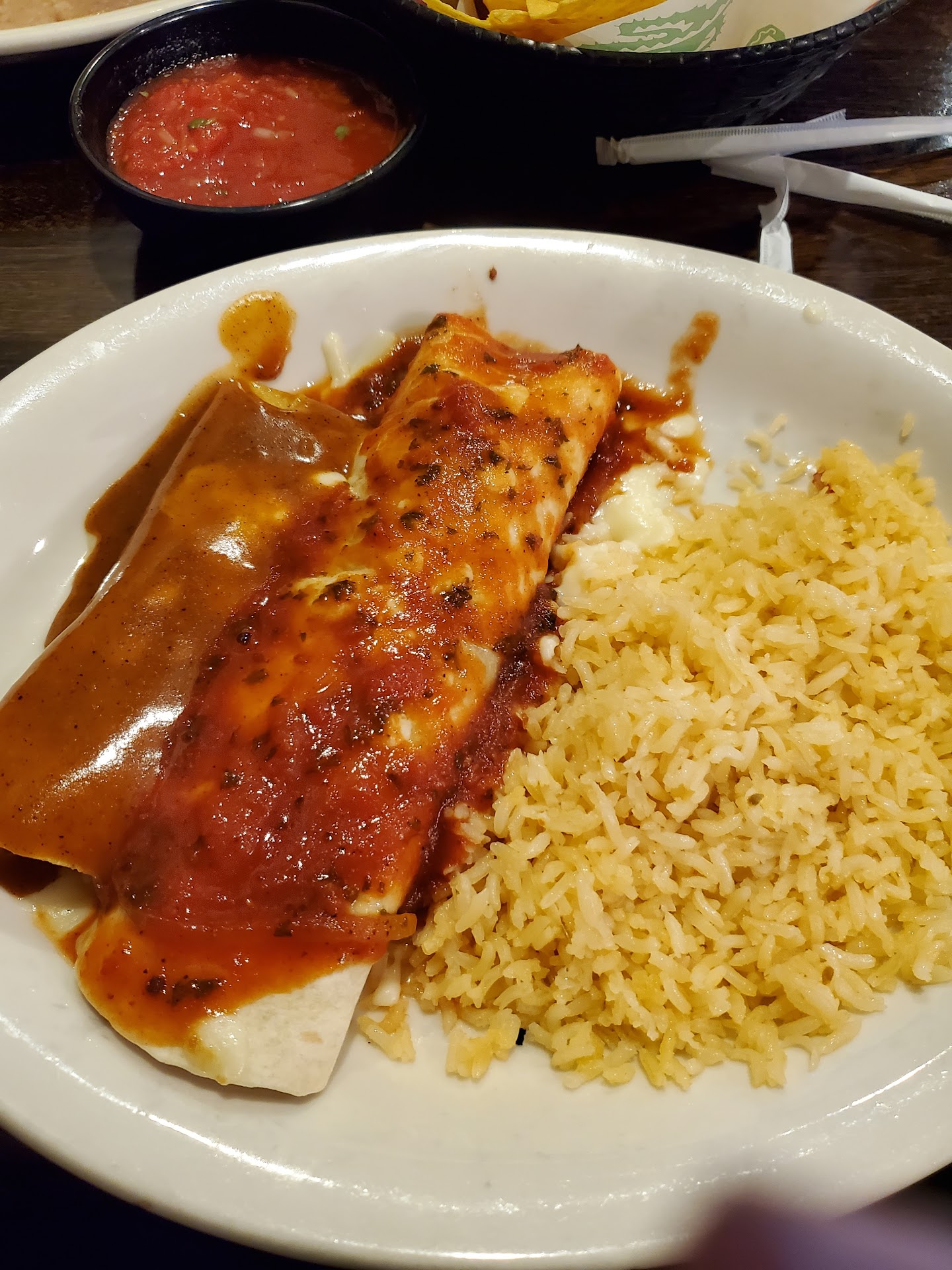 Poor excuse for a chimichanga. If i just wanted chicken, cheese, and bread then i would have ordered a quesadilla! I was highly disappointed when what I ordered was not what came out per my standards nor the standards of what an ACTUAL chimichanga is. If you are going to advertise something, at least make it like it should be. That is false advertising. Other than that, the chorizo cheese dip is amazing and highly recommended! The salsa was not too spicy so it was actually pleasant to eat!! Im not sure if I recommend this place for the purpose of they charge $2 for water when other places will not charge you. When looking at my receipt, they charge (2@$2) for soft drink. Didnt know that water was a soft drink now! They did fix it but most wouldnt look at the receipt so the company would be stealing money when customers dont look. Lupe was our servers name. Not sure if its just her or if there are others...just make sure you watch your ticket...