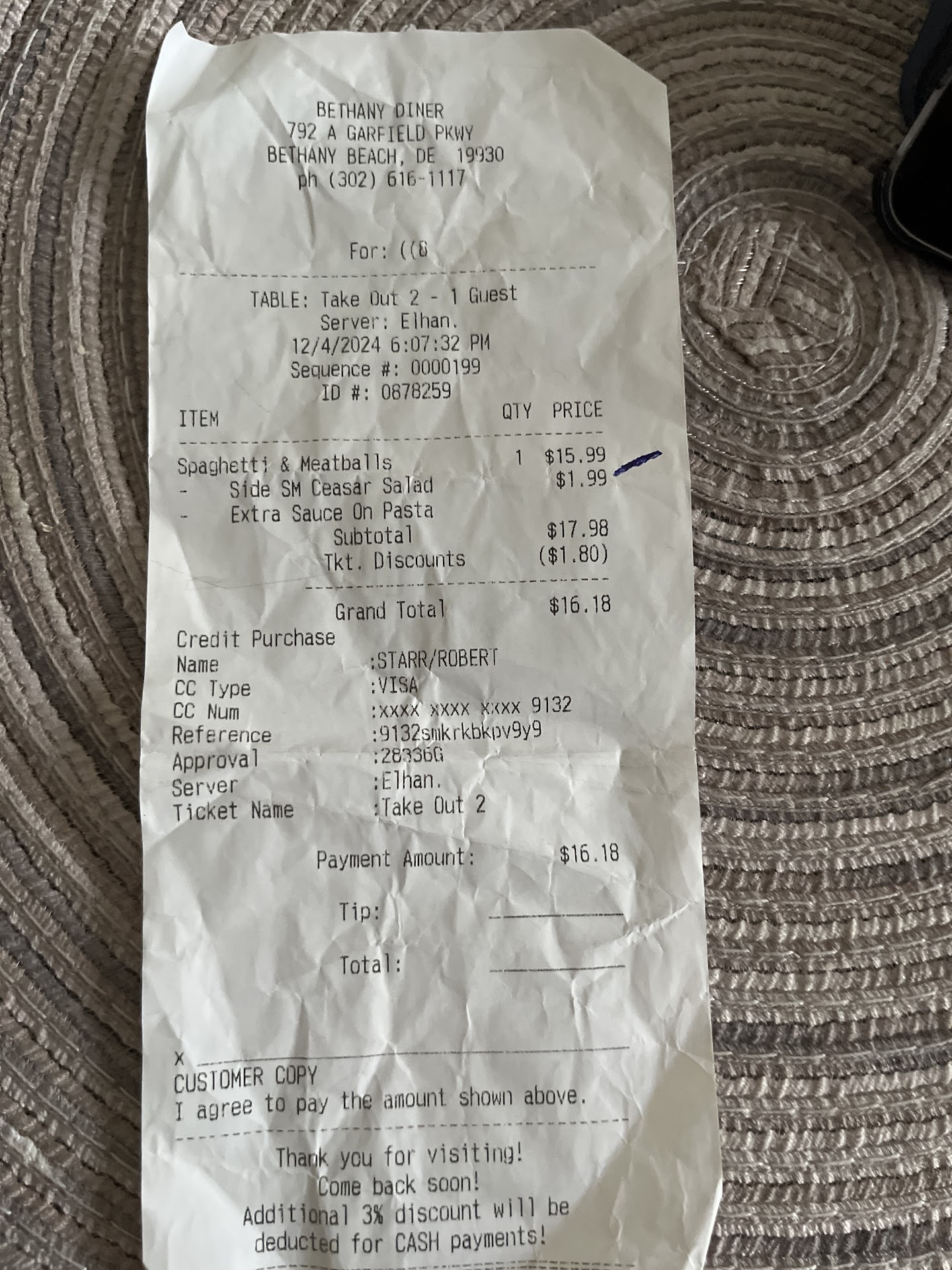 What a great day for my mother and father! On their 65th wedding anniversary they wanted to eat at The Bethany Diner. They have been locals for 25 years and had many places to choose from, but we (mom 84, dad 92 and aunt Dee 93) came here like many times before. The food was perfectly fine, we love the food! Our waitress Kim, was fantastic! She's a star in our book! The hostess, what a complete let down to the whole event; a balloon buster. Not only yelling at us unnecessarily, drawing a lot of attention and embarrisment from across the whole restaurant, (we were trying to seat my father he was using his walker) "don't sit at that table that has not been cleaned", she turned her back on us twice and walked away while we were trying to explain to her that we were just trying to "get dad off his feet he's 92 and very unsteady". Please note, we did wait a few moments to be seated and did read the sign "waitress will seat you " I Rob (59, dad's son) made a judgment call to get him off his feet before he may fall. The second time she turned her back on us, or me in particular, who knows, was when I tried to apologize and explain to her the anniversary, our age factor and that dad is very unsteady. What a total disappointment for a 65th wedding anniversary lunch for people who almost never get out to eat! I wish now that I asked her name; tank top, heavy set with several tattoos. She did say that our waitress Kim and she were "life long friends" when I asked her what our waitresses name was. She acted completely inappropriate and childish to the people who are Bethany Diner patrons and very elderly at that! We truly felt belittled and bewildered by her manners! We tried to be positive, paid, and gave a 25% tip to the great waitress Kim! We then went our merry way. Mom, dad, Dee and me won't be coming back! I'm completely sure that this hostess really couldn't care less. She made that obvious. What a letdown to thier golden years and Bethany Diner relationship. Thank you Kim for the rice pudding and anniversary cake, you’re great! The hostess, not so much. Management should address her unpleasant manner to the elderly paying Bethany Diner customers or any customer for that matter. She must have no understanding about the elderly and not realize that they have it tough enough without given an attitude. Whether they are a locals or not, whether she recognizes them or not. They should be treated with some dignity. You should at least try to listen when a customer is trying speak and explain something to you. You certainly didn't want to listen! Who ever you are, sorry we offended you somehow, but you really acted childish, unpleasant and unprofessional. Being a multiple business owner for over 40 years, you are not a person who should hold a hostess position. All four of us were certainly shown that today! Very truly yours, Rob. P.S. I never write these things, but you compelled me. At least you can bring that out...