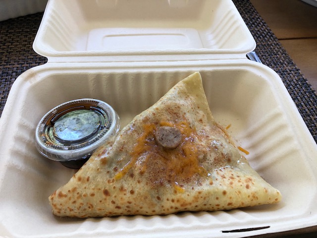 A considerable selection of both sweet and savory options. I can only speak for the one that I had; the Staff Favorite crepe feels like it was made precisely for me: egg, cheese, sausage, cinnamon sugar, and syrup. It was generously stuffed with fillings and provided that feeling of getting a big assortment of breakfast foods and eating them all at the same time in the best possible way.