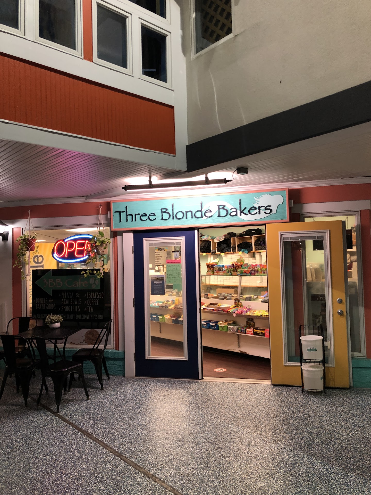 How about the "just a short walk off the boardwalk" down home style store front, locals running the shop spot called Three Blonde Bakers?