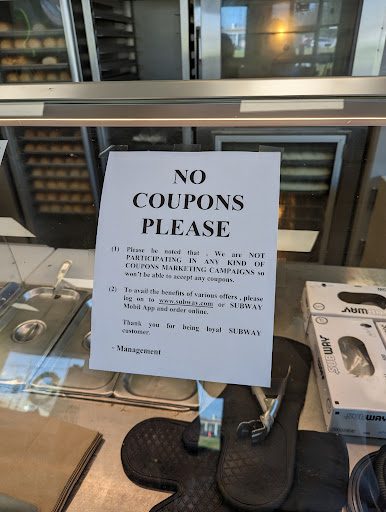 Ā Ā Ā Read moreThey are not true to there word. A very good friend of mine was told that her next order was on them being that a couple weeks ago she ordered sandwiches for 4 of us on line pickup and every sandwich was made wrong well yesterday she went in for the replacements and was told the manager/owner said he never talked to any lady about it.this was a slome move on his part.He only cared about the sale not the customer and making it right. It will be a bold day in hell if I or we ever support that shop or the one across from Peter's Baptist church being they are owned...