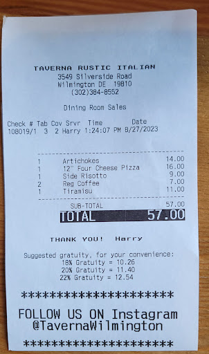 Read moreSurprisingly delicious food, and I mean that in all the best ways possible. The decor and staff uniforms lead one to the idea that the food is going to be very 'gastropub-like' in that it will be good and filling, but unremarkable and indistinguishable from food at other nearby places. This isn't the case. We started with the fried calamari and the veal meatballs with creamy polenta. The calamari was crispy and light, with the perfect amount of sauce. And that sauce, while having just a hint of spiciness, had a great touch of sweetness in the finish. The meatballs were fantastic. Brown crust, hot to the center with a small amount of red sauce over creamy polenta. The polenta was thinner than most places make it, almost like cream of wheat in consistency, but it was fantastic. Swiping a piece of meatball into the polenta was a great combination of savory and sweet. For dinner, my wife had the cheese tortellini and I had the rigatoni and sausage. The portions were VERY generous, and the food was delicious. The sauce on her meal was completely different on her entrÊe vs mine. What I said about gastropub-like atmosphere made this a surprise where a typical place would have the same "base" across dishes and add cream, or peppers, or cheese to change it from dish to dish. Not the case here and that made all the difference. Hers was the perfect spicy Calabrian that combined flawlessly with the cheese in the tortellini, and mine was a simple crushed tomato sauce that allowed the seasoning in the sausage to come through in each bite. We both had full bellies and 2 large to-go boxes filled with leftovers. Unfortunately we had no room for dessert, but this experience has me wanting to go back and try something else - maybe the cacio e pepe since I LOVE old-world italian recipes like that - but leaving room for dessert. For the service level we received and the quality of our meals, the price point made it all the more enjoyable. We ended up buying a gift card for my parents since we've been to a couple other places within the restaurant group and been equally as happy with...
