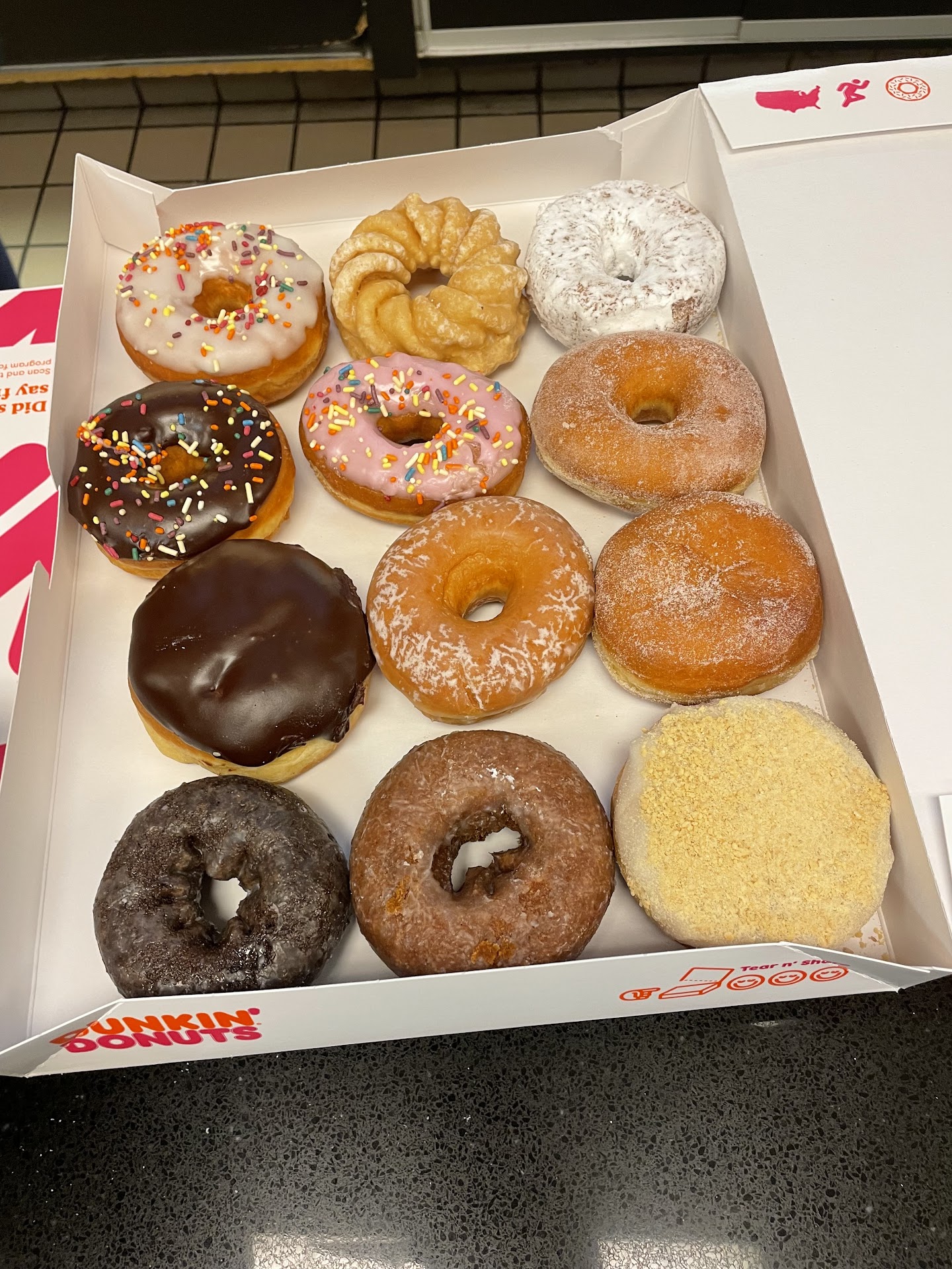 Ā Ā Ā Read moreWent through the drive thru around 5:45/6 am to get my daughter a donut before school. DEFINITELY SELLING YESTERDAY'S DONUTS. Very stale and hard....and half of the chocolate frosted was melted off already. Gross. Does this happen at every DD?