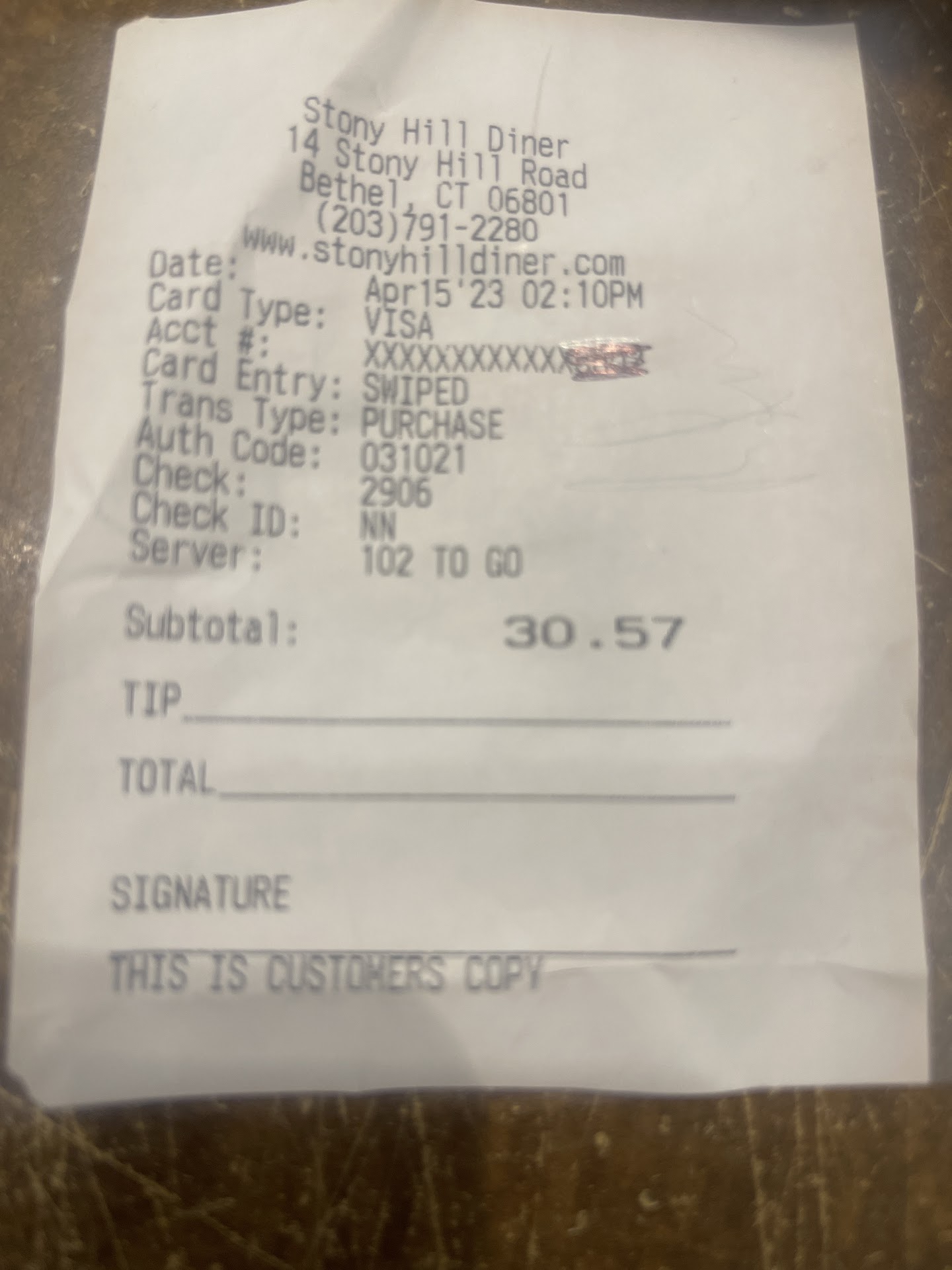 Read moreLove the diner and the managers are nice but wait staff can be quite moody, I know it's a tough job but I just want to eat good food in a nice friendly environment if your job is hard please don't take it out on us kind patrons. One thing in particular that rubbed me the wrong way, I took my 8 month old daughter there to get her first scoop of ice cream, knowing she wouldn't eat much I just asked for 1 scoop of vanilla, ok the waitress said and she went off, another waitress came to check on us, I repeated my order, she gave us 3 scoops instead, then proceeded to yell for whatever waitress was helping us to add this ice cream to the bill, with more determination than a Navy seal in training to make sure we got billed for this ice cream, I'm thinking internally I planned on paying for the ice cream what's it a dollar? Maybe 2 dollars? She continued stopping and asking every waitress until she found mine and made sure they did their due diligence in adding this to my bill (I also ordered $25 of food to go). When I got the bill there it was $3.75 for a scoop of ice cream. If $3.75 is so important profits must be tight. I went to another diner when she turned 1 and they just gave her free ice cream, that's community relations and repeat...