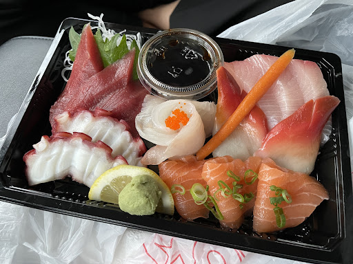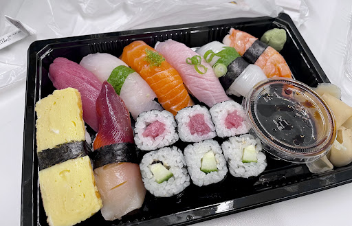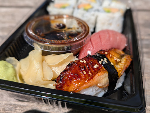 This is a part of a tiny Japanese grocery store, and it's takeout only. They have a two seat sushi counter but they said they haven't dine in since Covid.