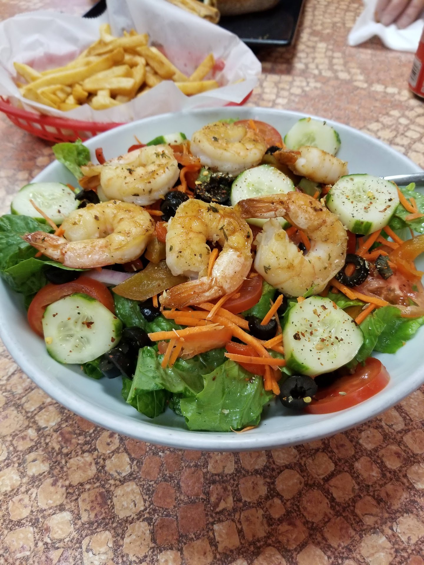 I gave the card for my order, the young guy said it did not go through. The owner then came over and ran my card two more times before handing the card back to me. Upon getting home we opened up the containers and two orders were missing fries. I called them right away to let them know, they then sent someone to bring it to my home.