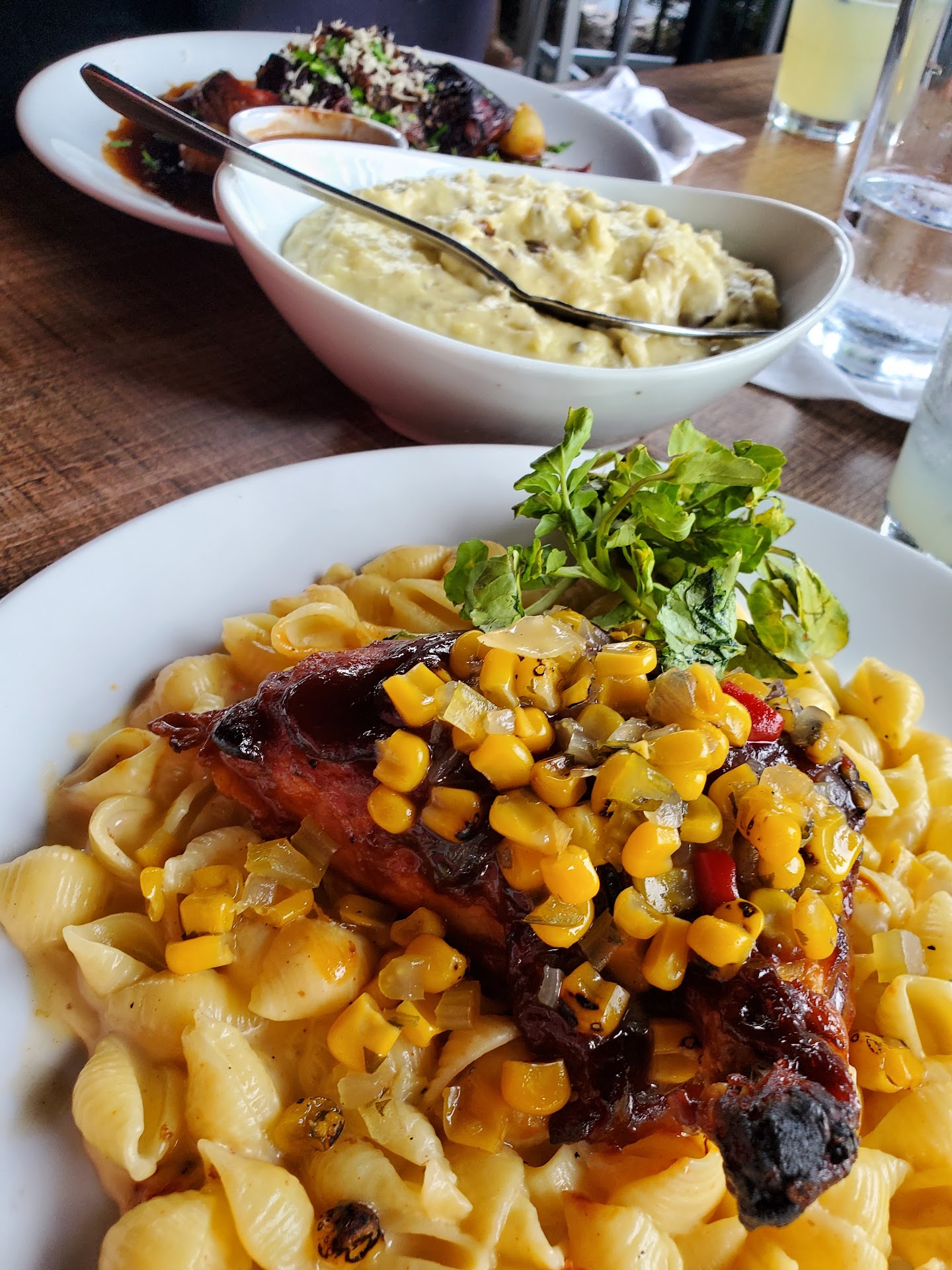Read moreI have no earthly clue how a restaurant that is gorgeous, both inside and out who has an amazing front of the house staff and has been established as a fine dining restaurant in the Lehigh Valley for years can serve mediocre, at best food. Blueâs website touts a âPerfect Situationâ âŠ.not so much. First off, a huge shout out to our waiter Stefan, who couldnât have been more attentive, knowledgeable about the food and drink and professional. He made our experience enjoyable, the food on the other hand⊠Our party of 4 dined at Blue on 1/13, (hoping that no one will cite this as the reason). We started off with the Calamari and Haloumi appetizers. Never have I ever had Calamari served with a barbeque sauceâŠand the tomato sauce, was just that, a very pedestrian marinara. The menu states that the calamari was supposed to be honey-glazedâŠnope, just dry, fried calamari, which was good but we have had the same quality at restaurants that donât tout the fine dining, aka, pricey tag. The Haloumi was dry and hard, resembling burnt toast, may I suggest just a drizzle of a little something, something, olive oil, balsamic glaze, like I do at home? The addition of a spritz goes a long way. Next came our entrees. I love duck, so when I see it on a menu I generally order this. Another of our party also ordered the duck, his medium and mine medium rare. One would think that we both ordered it well done because despite the appearance of medium, medium-rare, both were as tough as shoe leather and rather tasteless. The confit/brussel sprout mix that the pieces of duck were laid across was fabulous, though, so well done on that piece of the dish. The plate also came with what the menu described as a dried apricot compote. Not sure what cookbook the kitchen was working out of but our plates were half covered in what appeared to be apricot jelly, I took a picture as I seriously couldnât make this up. My husband ordered one of the specials which was a Jambalaya, supposedly with U-20 shrimp, (not so much) and chicken. The dish was so-so, but nothing like one would expect at a restaurant of the Blueâs caliber. The last order was salmon, my friend ALWAYS orders salmon so she knows good salmonâŠagain, nothing out of the ordinary. We had been to Madeleineâs a few weeks back and their salmon was to die for. So for friends who love to cook, knows good food and look forward to going out to eat to be wowed by something we wouldnât normally cook at home, this experience was not what we were hoping for. Again, Wait Staff, Outstanding, especially Stefan; Atmosphere, Enchanting and Inviting; Food, fell so far from what one would expect given the quality of the front of the house staff and atmosphere. Bottom lineâŠtry...