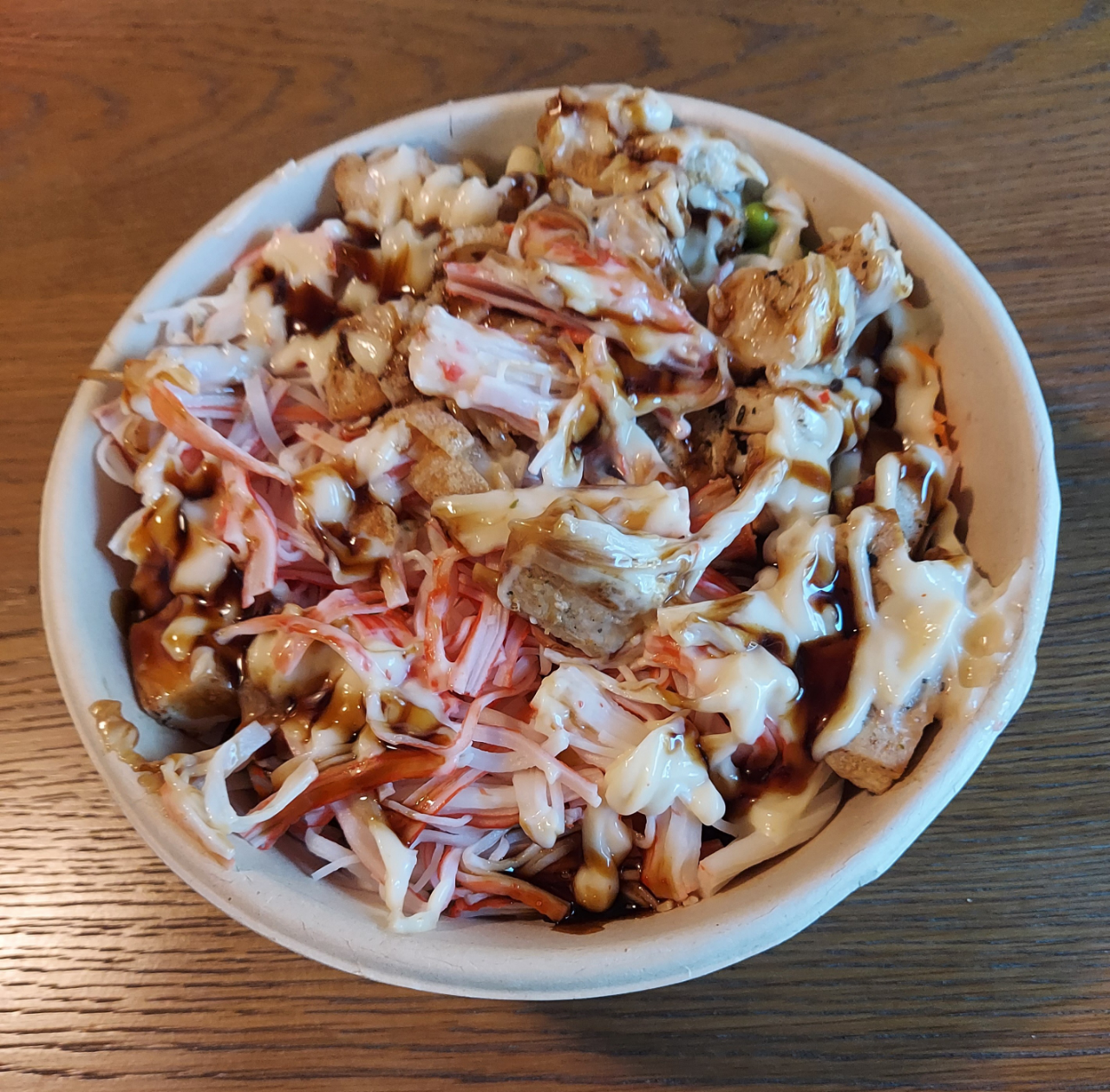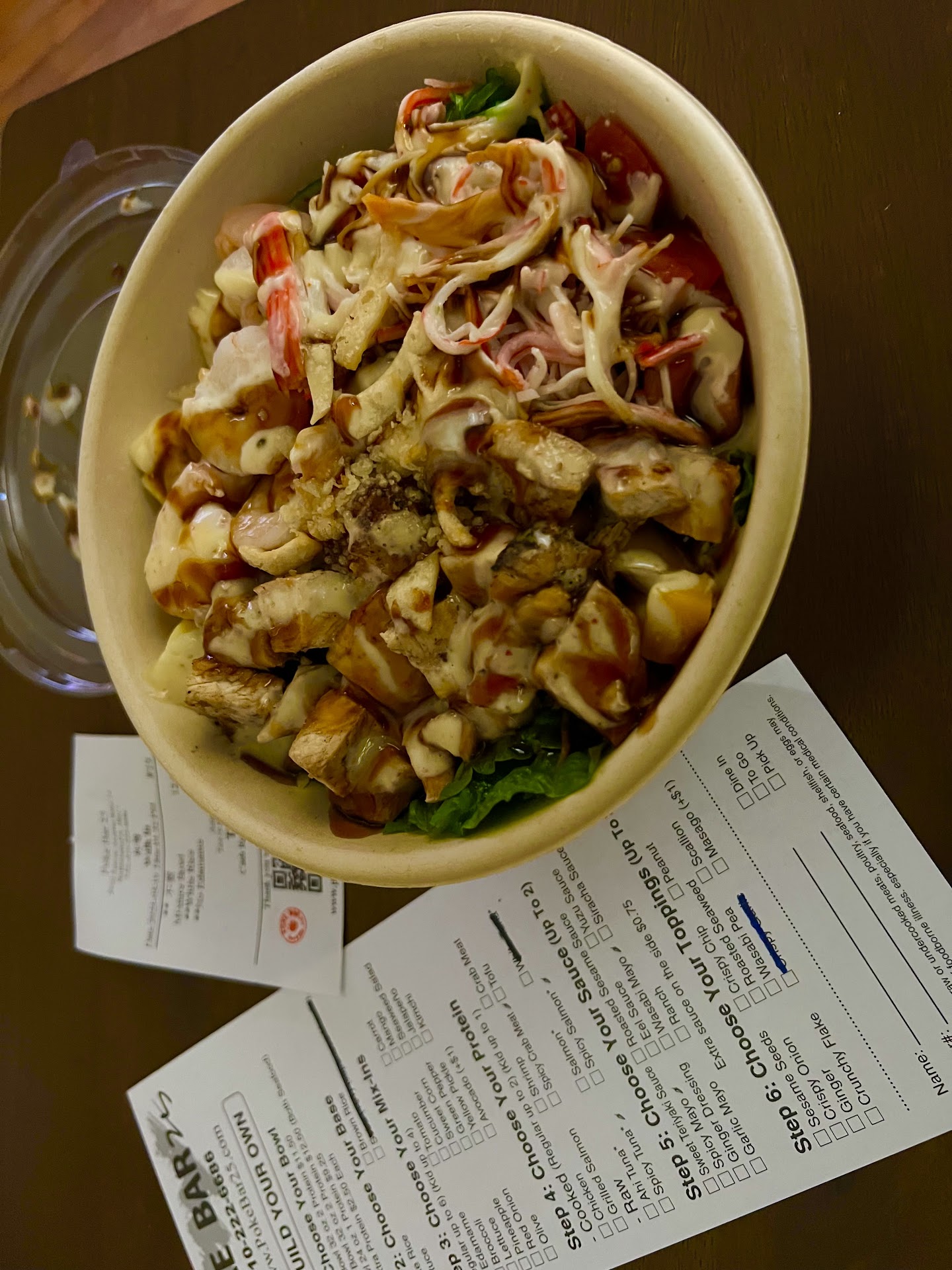 Read moreI want to preface my review by saying this is my first ever poke bowl. However in saying that, the bar has now been placed very high for any other place that I will try one at. That's how good this poke bowl was! I got the mixture bowl (chicken, shrimp, crab, white rice, veggies, pineapple, garlic mayo and eel sauce, etc) and it was quite amazing! The portion was huge and I wasn't able to eat it in one sitting! Everything was super fresh and it was a great combination of flavors & the sauces on top - perfection! I took my food to go, but I would definitely come back and eat inside when I have the time as it was super clean, bright and a very cute cafe type atmosphere. Everyone was very nice and my food was made right in front of me and the whole process was very quick. I would definitely recommend you try it! I will be back. *Update. Still giving 5 stars. Returned with my hubby and we ate inside. Food was super good and he had his first ever poke bowl and enjoyed it. He did the build your own with chicken and shrimp, veggies, mango & a sweet teriyaki sauce. Definitely recommend. Staff super friendly, place is clean. His only complaint was the music which was almost...