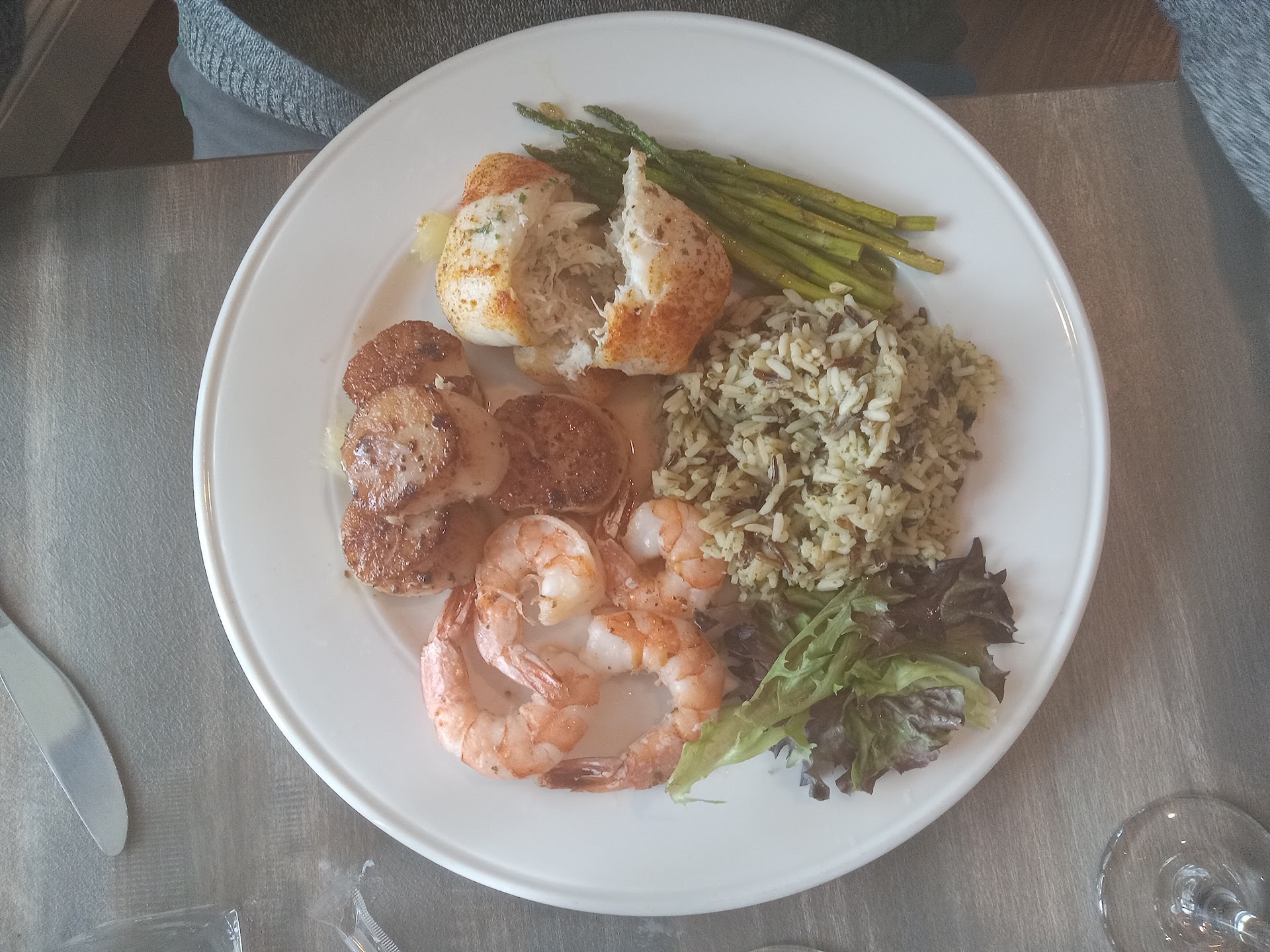Ā Ā Ā Read moreThe food is sub par, the ambiance is a bit lackluster, but the service is terrific. The complimentary bread and butter was a good start to the meal. My Caesar salad that came with my entree was too overdressed. I ordered the pesto salmon dish- the salmon was dry and the pesto was a glob that rested on top of the fish and didnāt really do much to elevate the salmon. The flavors were not integrated well, and the dish felt disjointed. However, I loved the side of mashed sweet potatoes- probably one of the best that Iāve had. My friend ordered the jerk tuna which he enjoyed, but I wasnāt too impressed with the two bites that I had. The best part of our meal was the chocolate mousse cake dessert. They do a persuasive job at trying to get you to order dessert by presenting a large tray of all their dessert items. The cake was presented beautifully and I probably spent more time taking photos of the cake than eating it (it was gone in about 6 bites). We were attended to by Maria, who was very friendly and offered helpful advice...