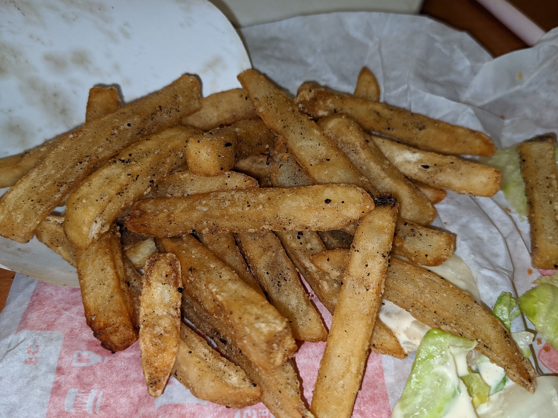Read moreI really wish I could give this establishment negative stars. The pictures speak for themselves but I'll elaborate anyway. Stopped here on the way back to our hotel around 11:30 pm. There was literally only one person actually working. The "manager" was just standing around waiting for the one individual that actually was working to make sandwiches and get everyone's order together. The individual taking orders at the drive thru had no personality at all. Did not say one word as he took my money...gave me my change...or handed me my food. The only time he spoke was when I asked how many people they had working since we waited close to 15 minutes in the drive thru for our food. As you can see from the pictures the chicken sandwich I received was one of those international patties. Not the chicken breast that's pictured. Now take a good look at those fries. Notice the black specs on them? That's not pepper. When we got our food the first thing we noticed was the smell of burnt oil. Obviously these fries were cooked in very old oil. Those black specs are all the old food particles left behind from the previous DAYS of food. This is by far the worst Burger King that I've been to. I'm not sure if this is just the standard for Bethlehem PA or if this is just the laziest BK crew on the East Coast. Either way this meal was a...