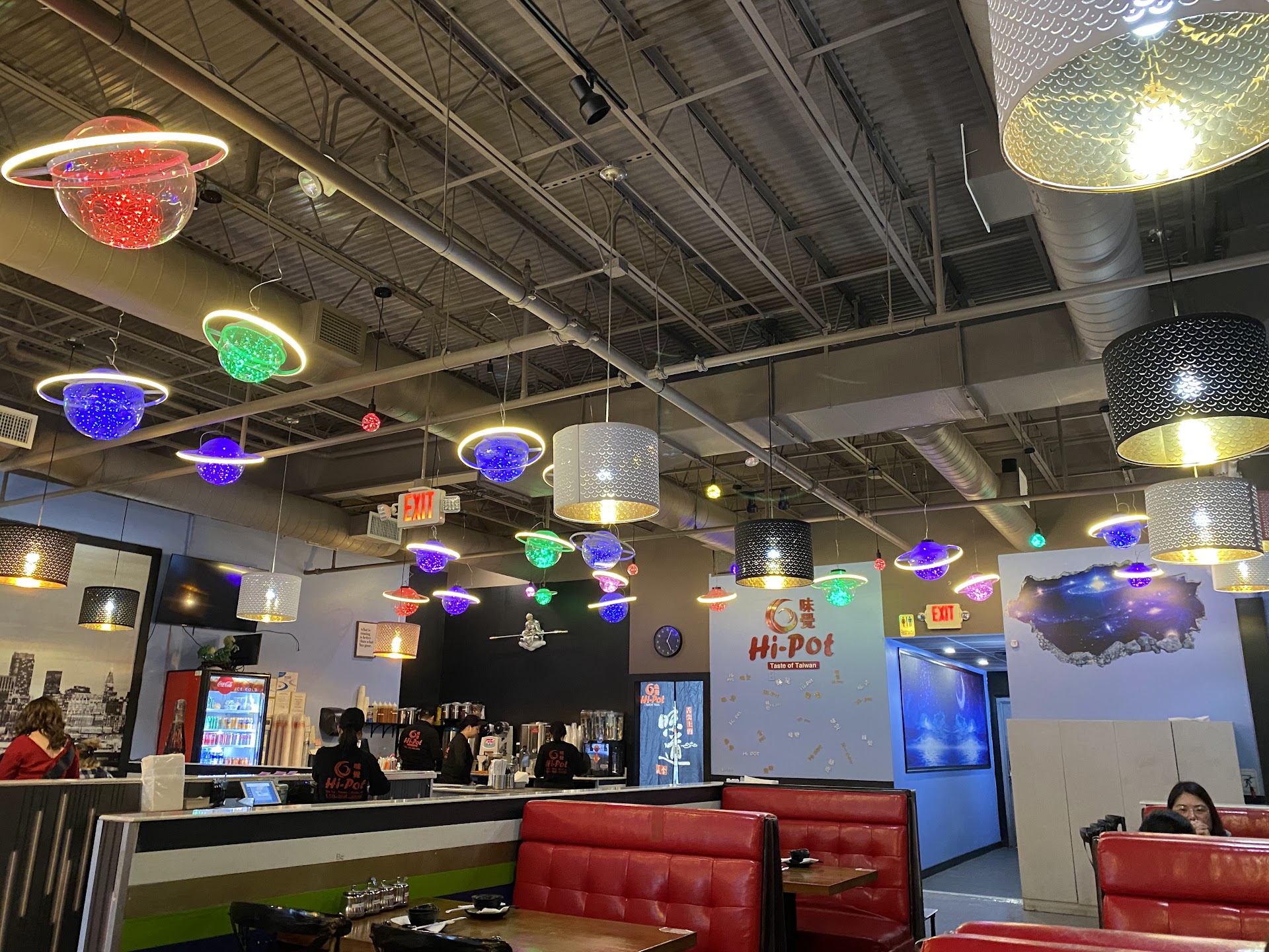 Otherwise, the service was nice and prompt and the location clean. The decor is a mix of colors and themes, with fun space lamps in the ceiling. If ever in the area again I don’t think I’d go back if I’m being honest, because neither of us enjoyed it enough to do so. Also -1 point for using plastic cups for water and disposable cups for tea. We were dining in and this just seemed kind of like cheap (and wasteful) presentation next to the nicer non-disposable bowls...