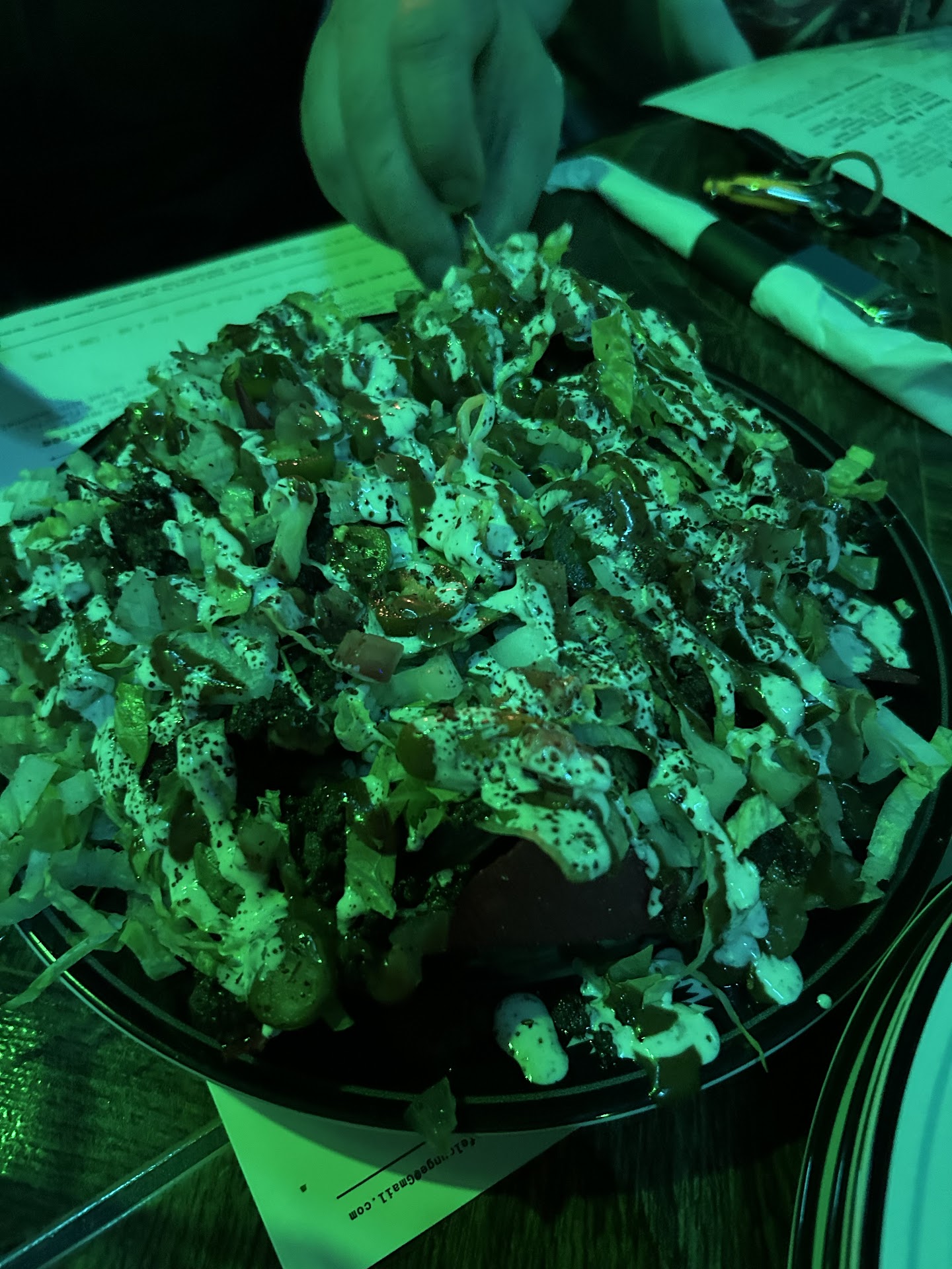We ate some edibles, and started our way over. As we approached we noticed it was also a hookah bar, which made me unsure of whether the food was going to be worth it — but I figured whatever, munchies would kick in soon enough anyways. 💁 It was late on a Wednesday night, so there was only one table of people as we got in, still hesitant about how the experience would be.