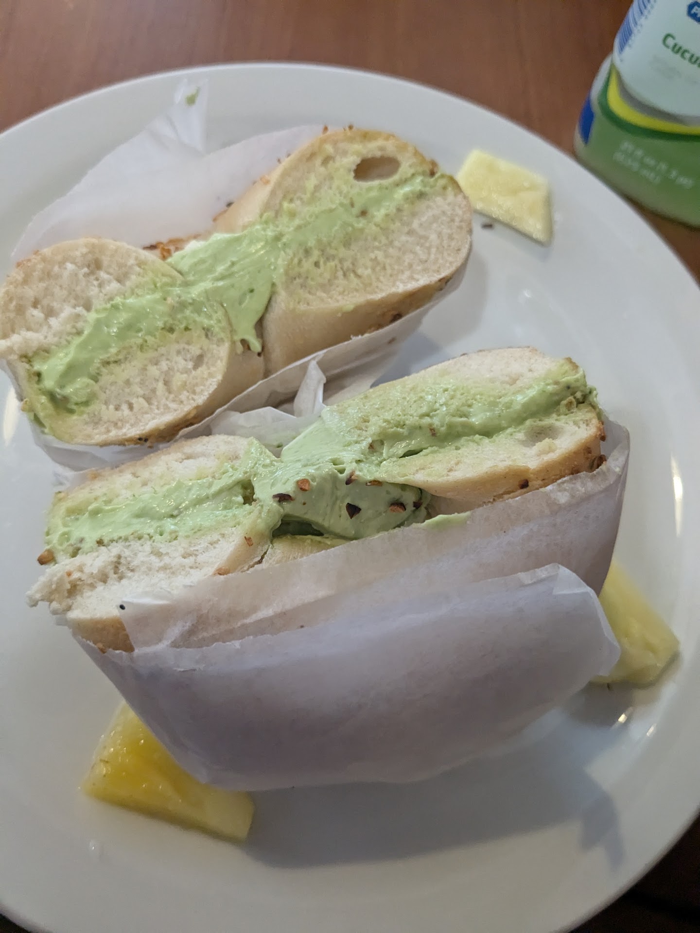 I interacted with the gentlemen behind the counter and found out they had several cream cheese options for the daily, fresh-made bagels they served with smiles and toppings. I chose the everything. Thinking on the memory of a former pastry which I no longer could have, I requested the jalapeño cream cheese.