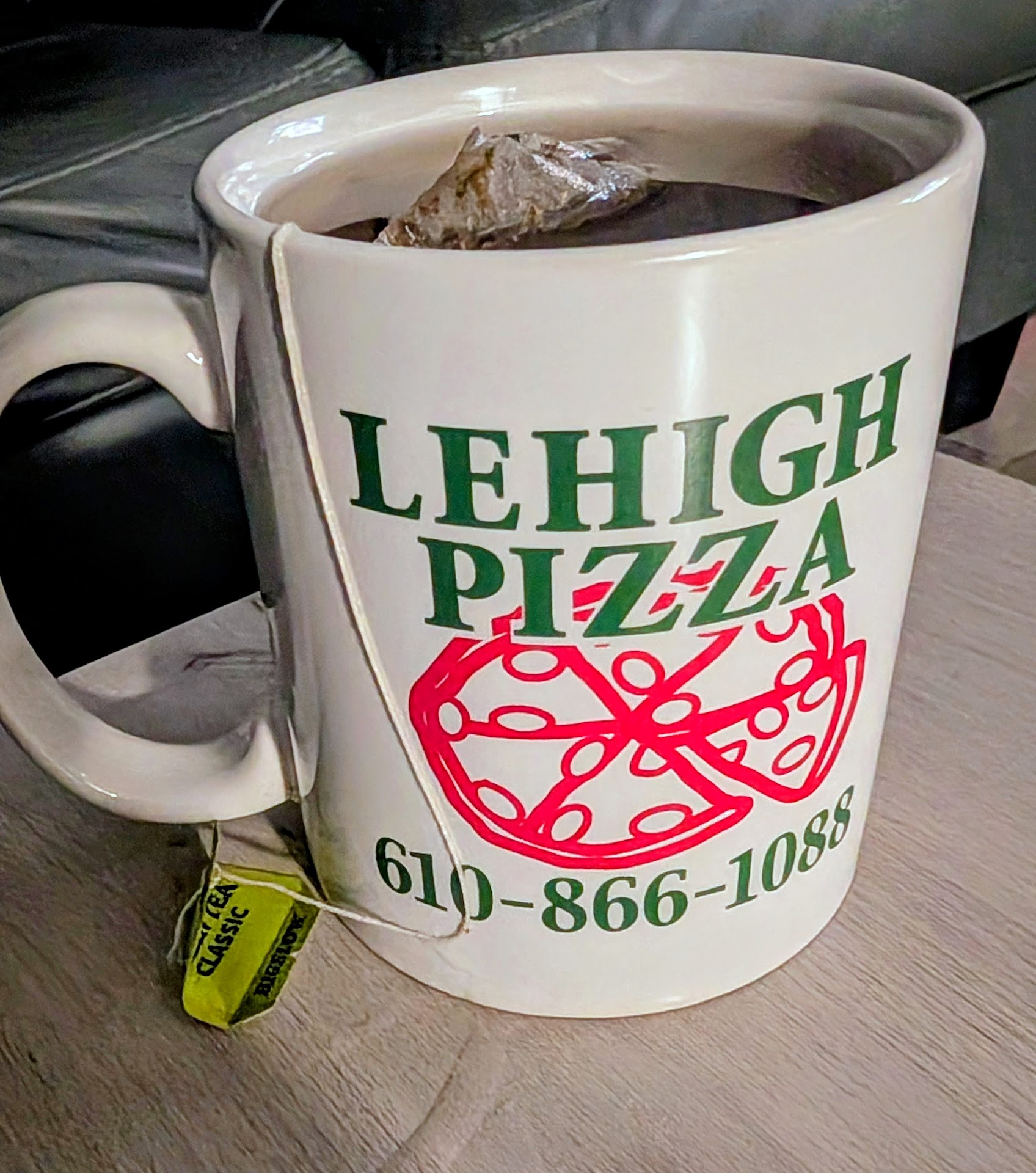 When I was paying the bill, I noticed some pens in an old Lehigh Pizza coffee mug by the register. Don't typically see pizza places with their own coffee mugs for sale, but I inquired if they had any mugs for sale or any that they be willing to sell even if they didn't. I was told no initially. However, after hearing my wife was from Bethlehem and had literally grown up on Lehigh Pizza, the manager/owner offered, despite being busy, to go upstairs and look to see if he could find one. A few minutes later, he returned with a coffee mug and a Lehigh T-shirt he thought my wife might appreciate. The fact that he took the time when he could have easily said no and left it at that meant everything. Now, for the past month, my wife has enjoyed her morning coffee or tea every day from her Lehigh Pizza mug, sometimes while wearing her Lehigh Pizza t-shirt. It is a little piece of home and absolutely her new prized possession. Thank you, Lehigh Pizza and keep up the good work. I see you all will be celebrating 50 years in business this year. Congratulations and...